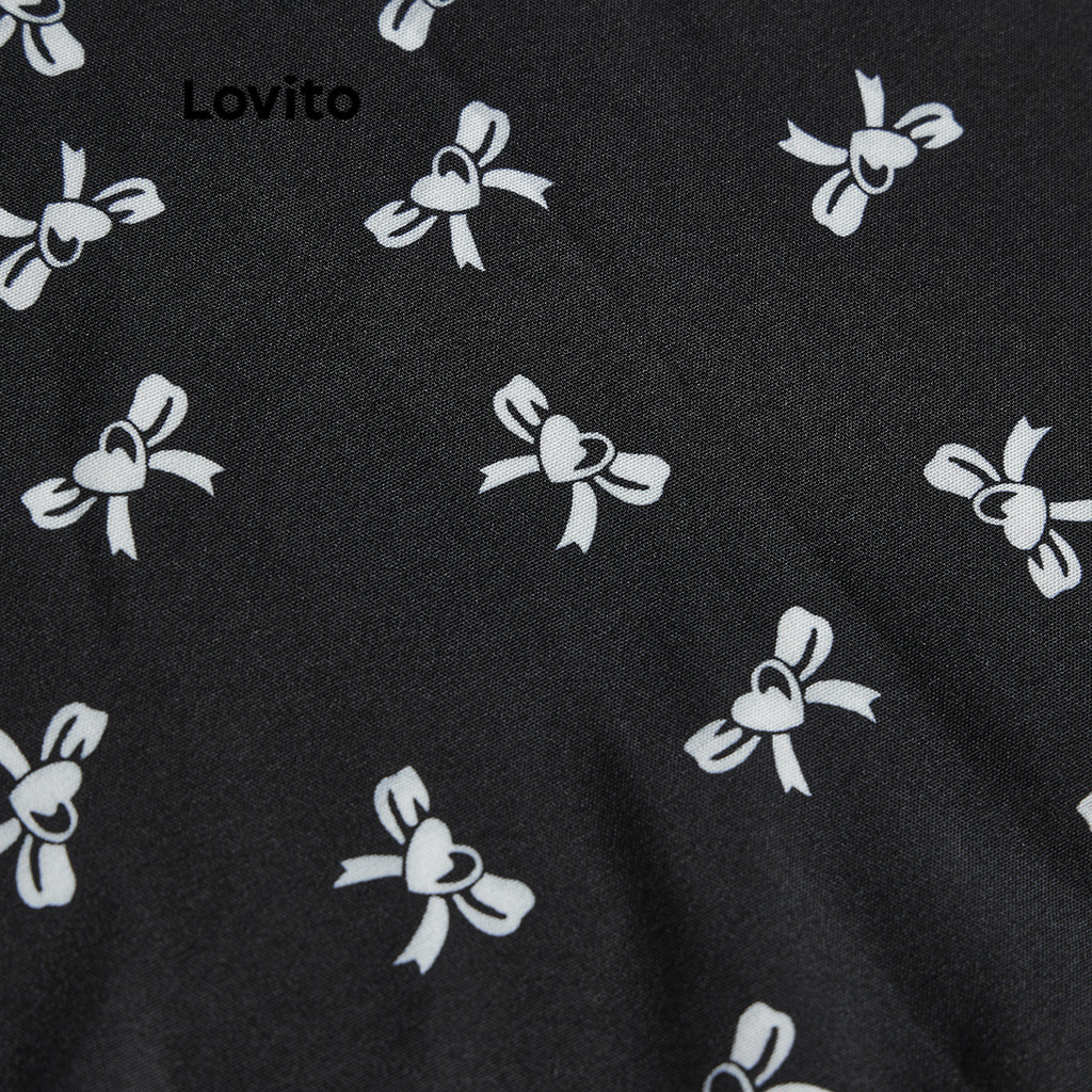 Lovito Đầm xẻ phía trước buộc dây màu trơn dễ thương cho nữ l45ad041 (Màu Đen)