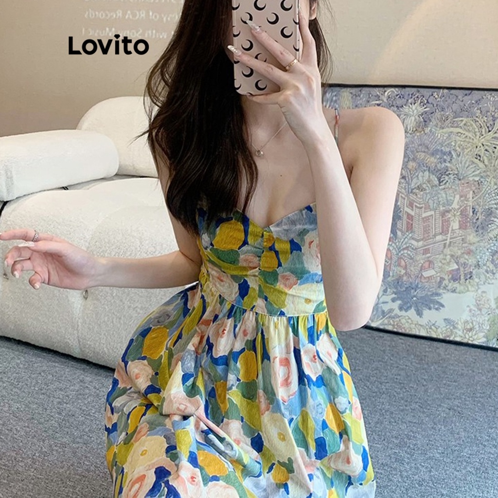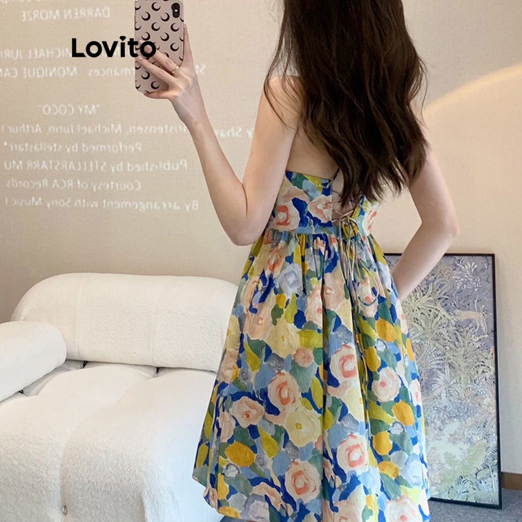 Lovito Đầm hoa khoét lỗ khóa kéo phía sau cho nữ l59ed108 (màu tím nhạt)