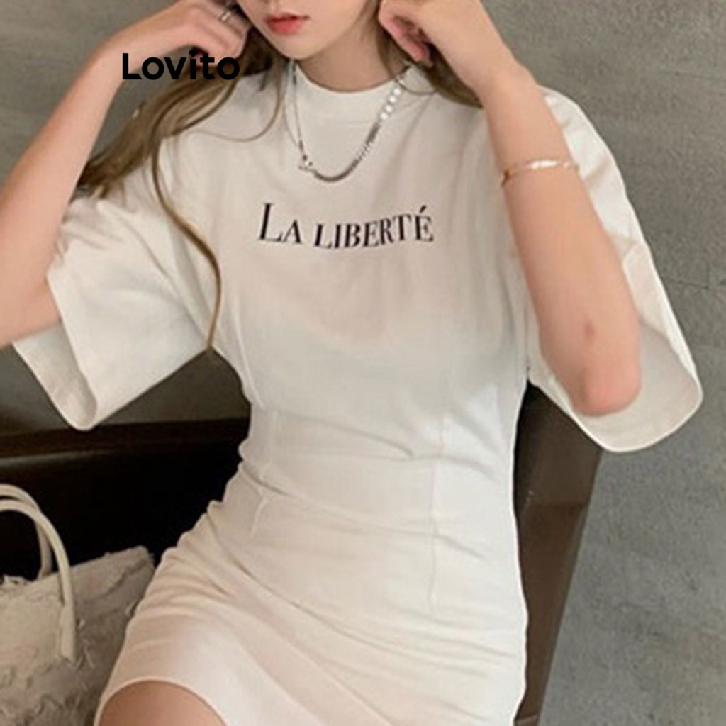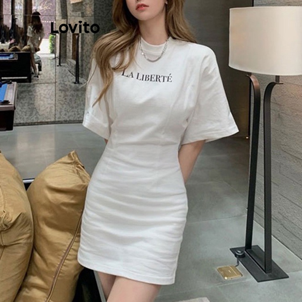 Lovito Đầm thường ngày buộc dây màu trơn dễ thương cho nữ lne21165 (Nhiều màu)