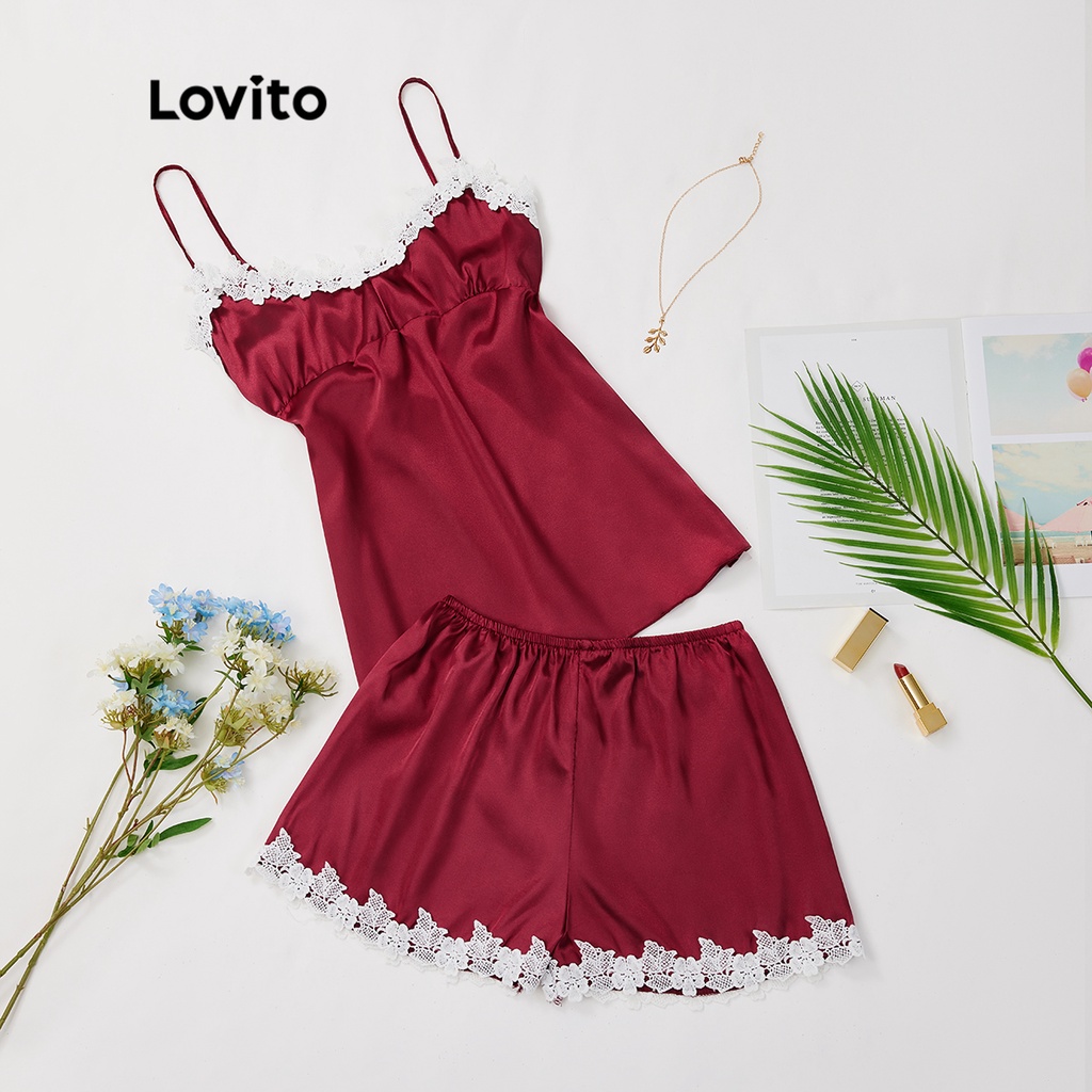 Lovito Áo Ngủ màu trơn không tay cổ chữ V gợi cảm cho nữ lne07050 (Nhiều màu)
