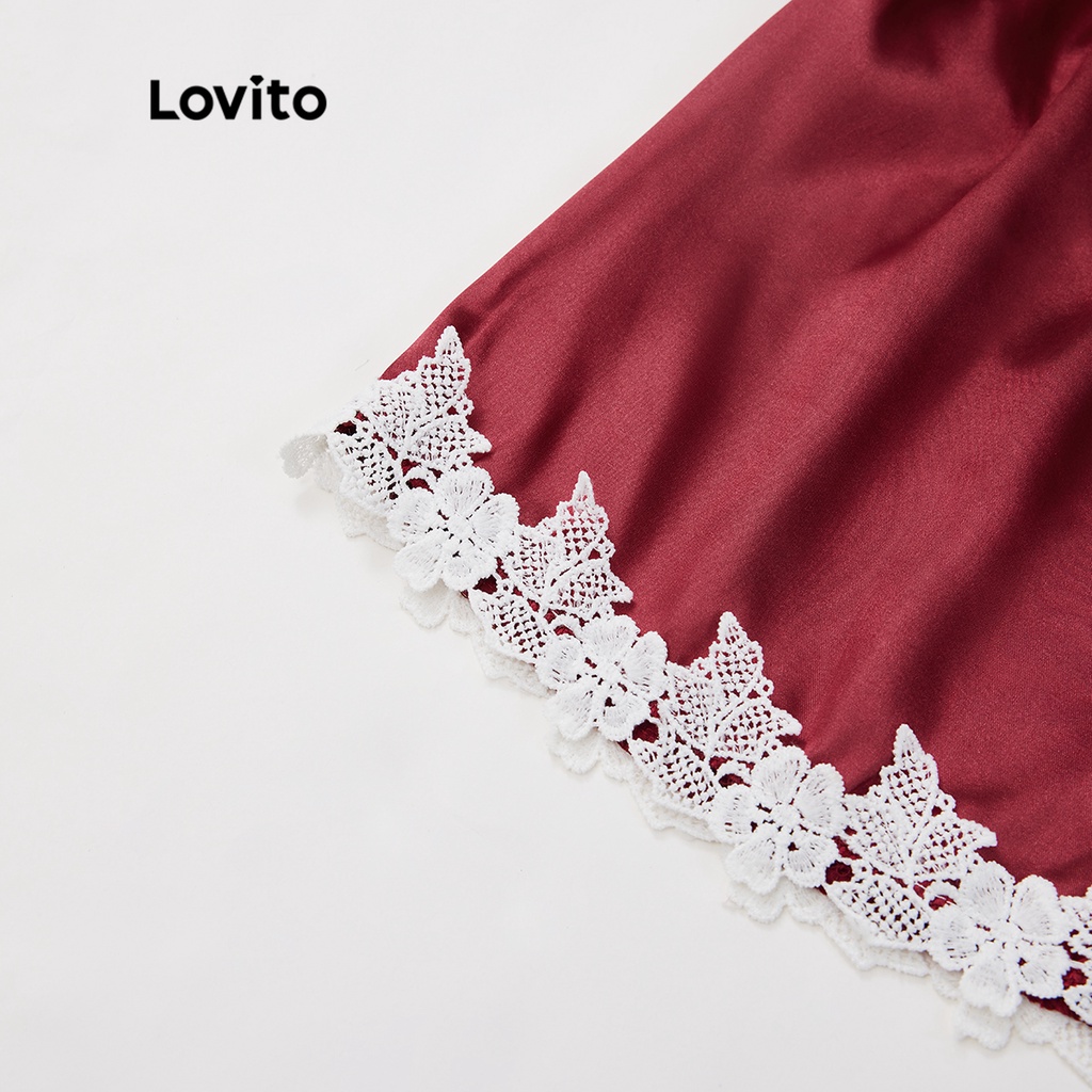 Lovito lna27252 Áo ngủ xếp ly ren hoa cúc thường ngày đồ ngủ nữ (Hoa mai)