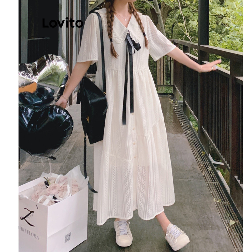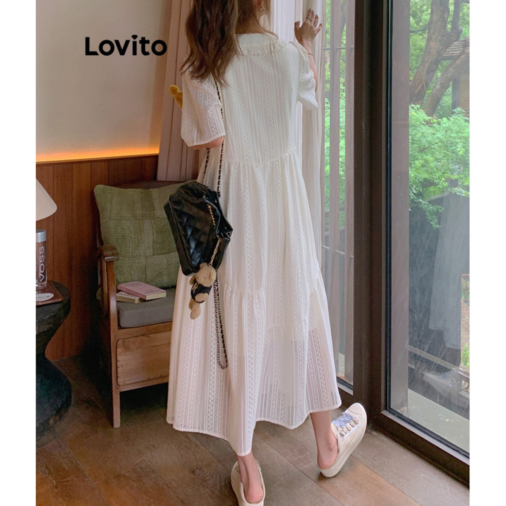 Lovito ĐẦM BOHO dài tay phù hợp với mọi người l38ad038 (Màu Trắng nhạt)