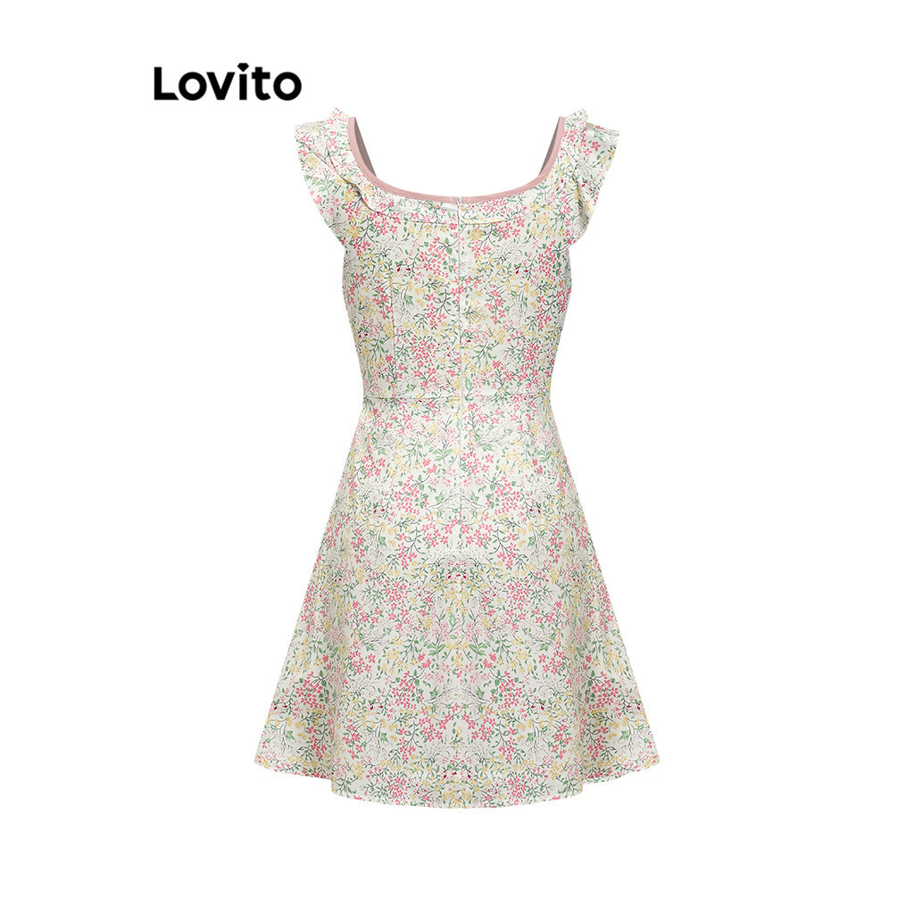 Lovito Đầm Băng quấn tay đèn lồng xếp nếp hoa cho nữ l77ed275 (Nhiều màu)