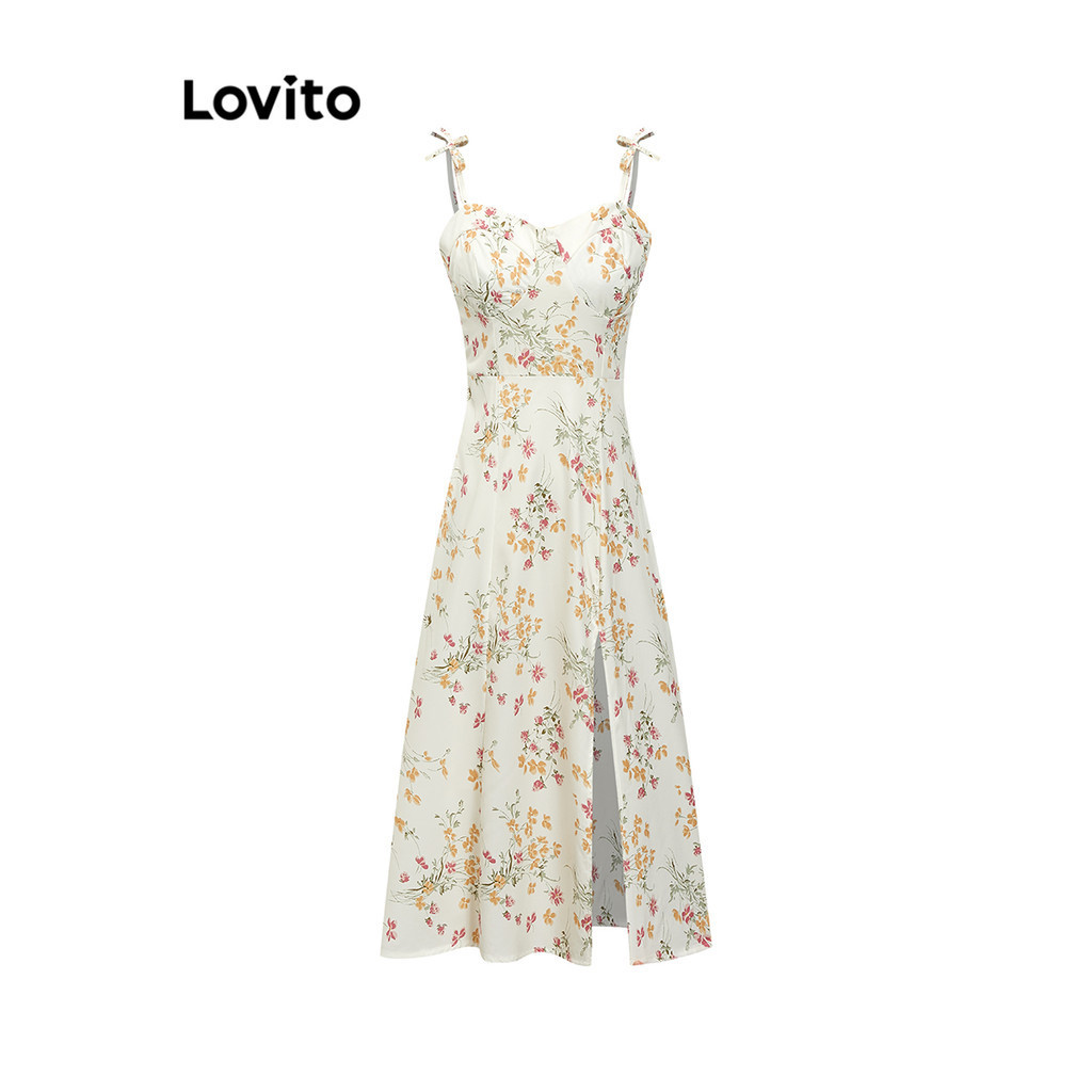 Lovito Đầm Băng quấn tay đèn lồng xếp nếp hoa cho nữ l77ed275 (Nhiều màu)