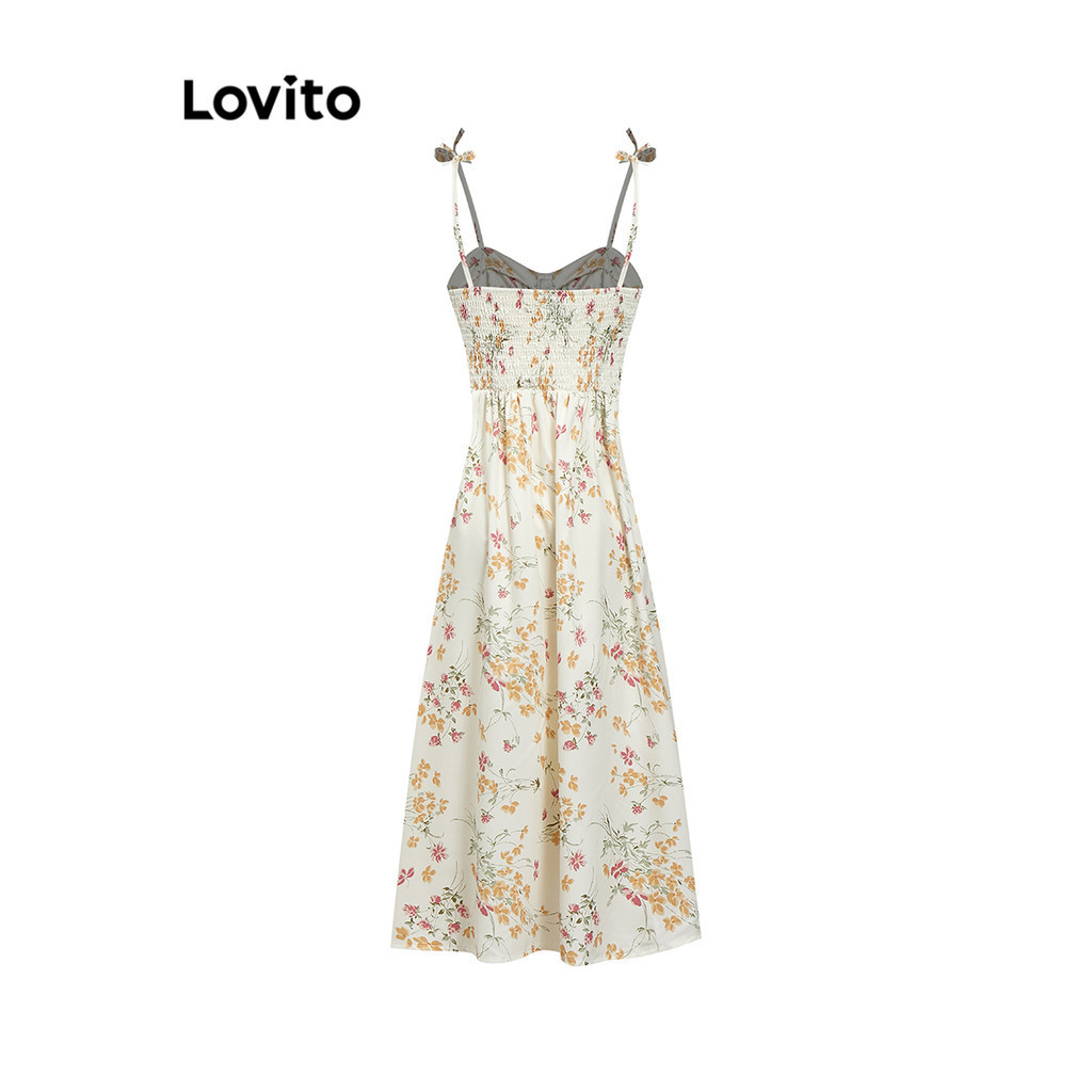 Lovito Đầm xếp ly dây buộc cho nữ ĐẦM BOHO khối màu hở lưng l79ad085