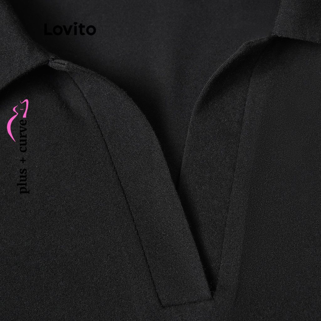 Lovito Đầm tay đèn lồng có khóa kéo màu trơn thường ngày cho Nữ đường cong ngoại cỡ lps05023 (màu xanh lá cây)