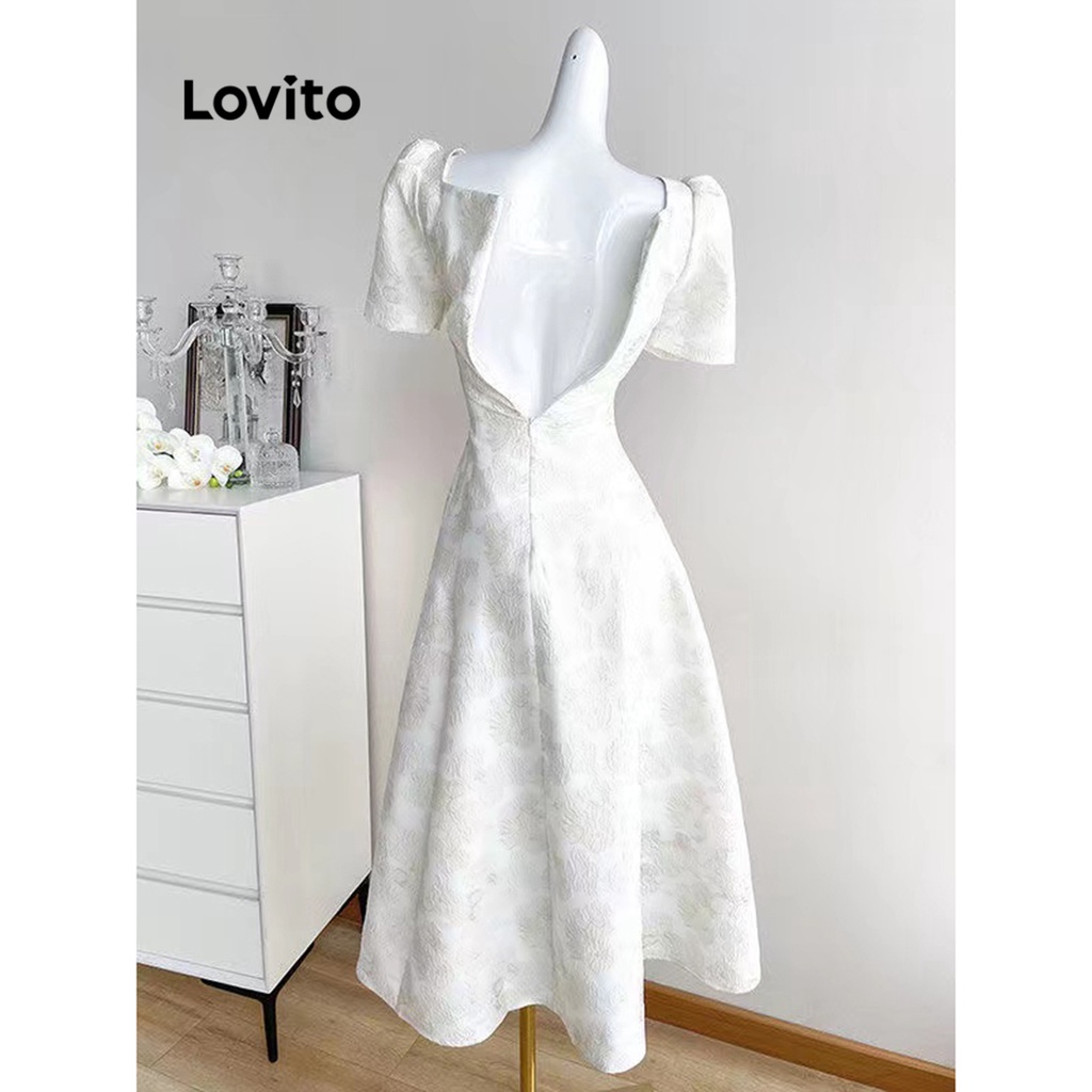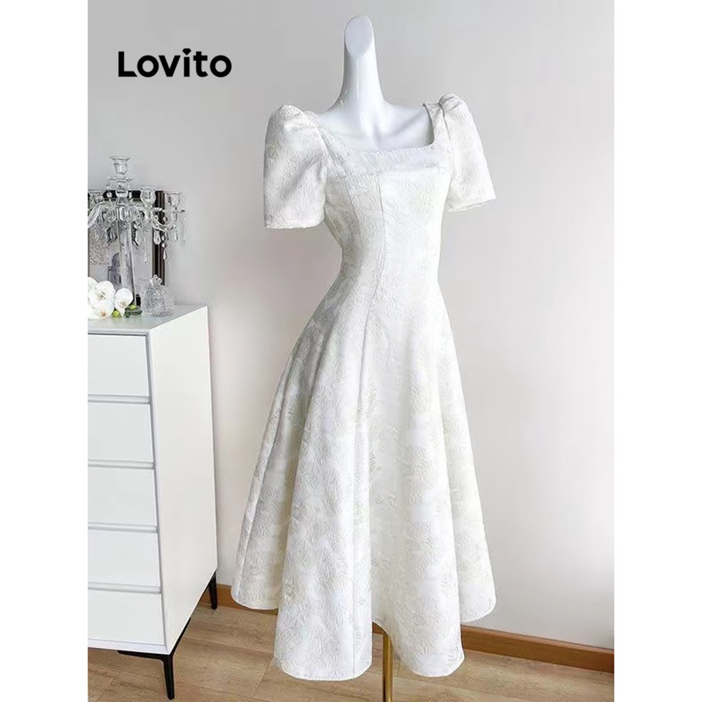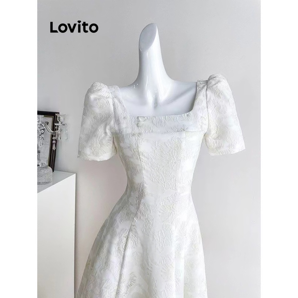 Lovito Đầm Băng quấn tay đèn lồng xếp nếp hoa cho nữ l77ed275 (Nhiều màu)
