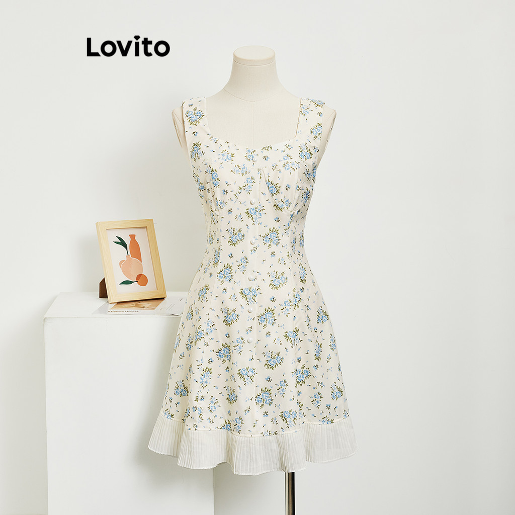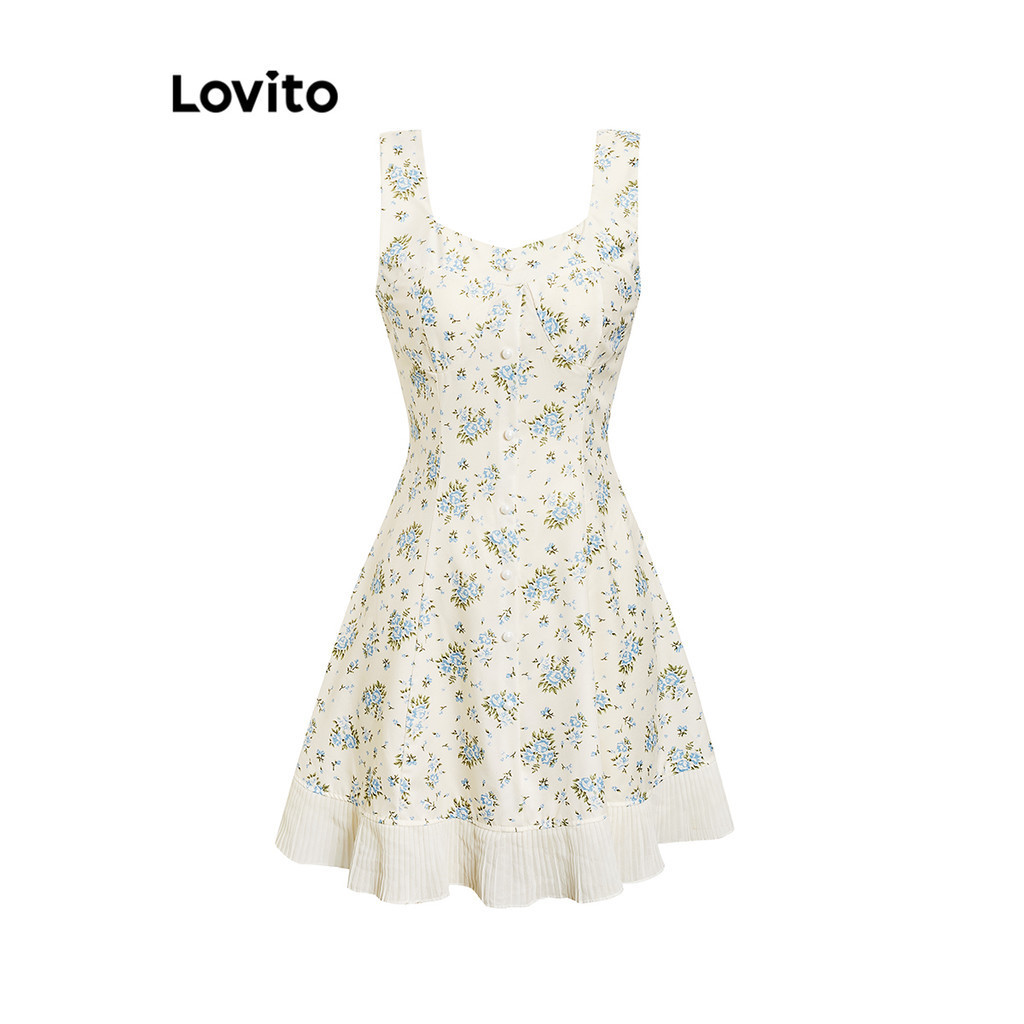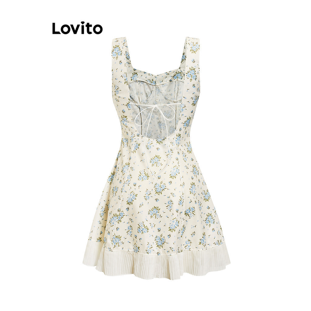 Lovito Đầm Băng quấn tay đèn lồng xếp nếp hoa cho nữ l77ed275 (Nhiều màu)