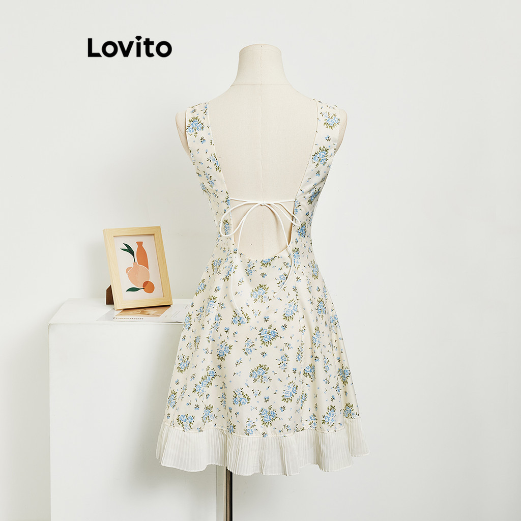 Lovito Đầm xếp ly dây buộc cho nữ ĐẦM BOHO khối màu hở lưng l79ad085