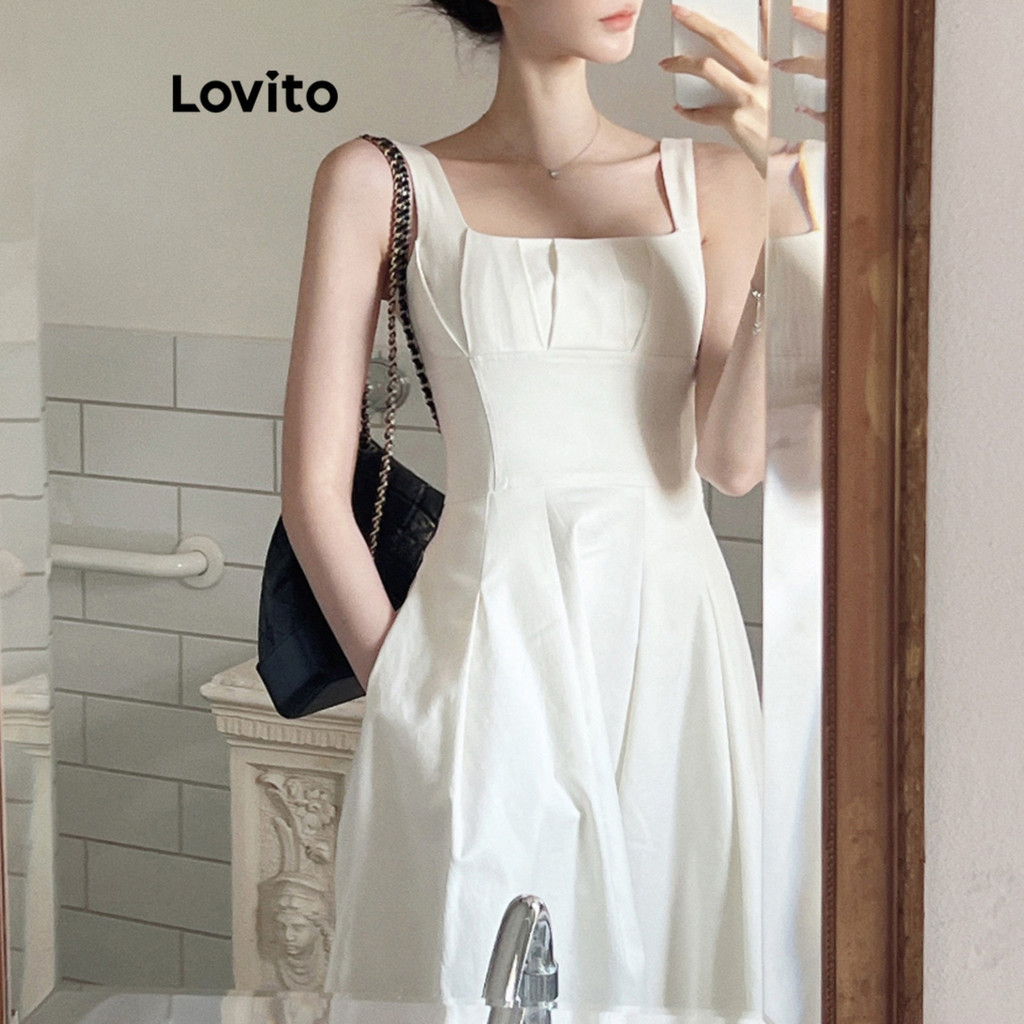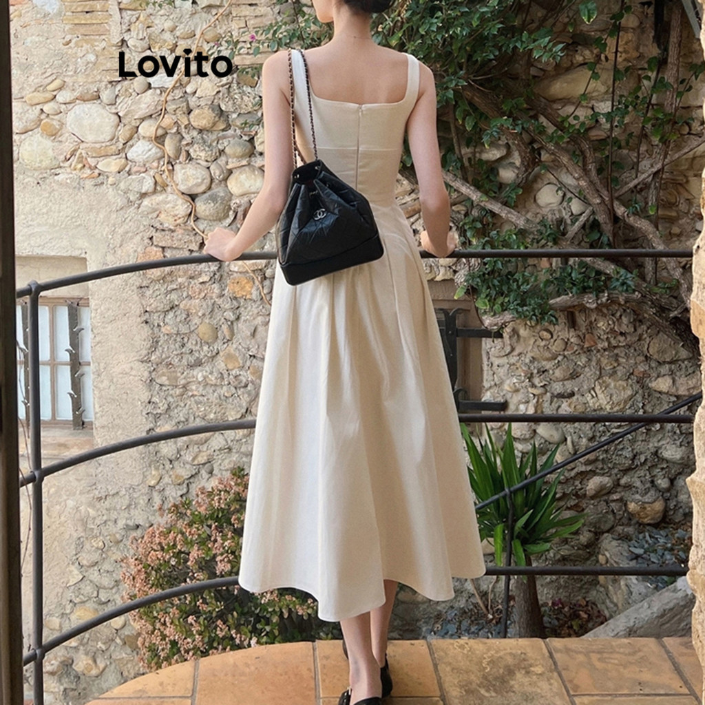 Lovito Đầm xếp ly dây buộc cho nữ ĐẦM BOHO khối màu hở lưng l79ad085