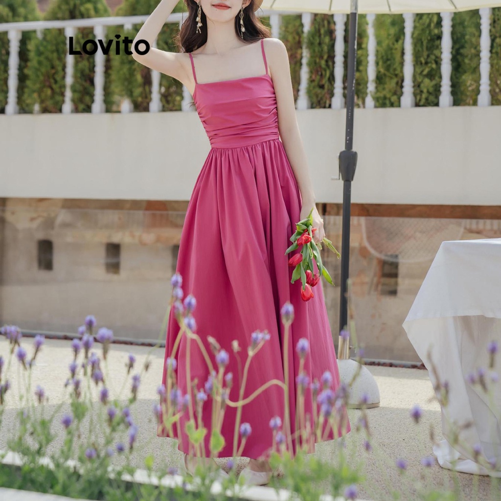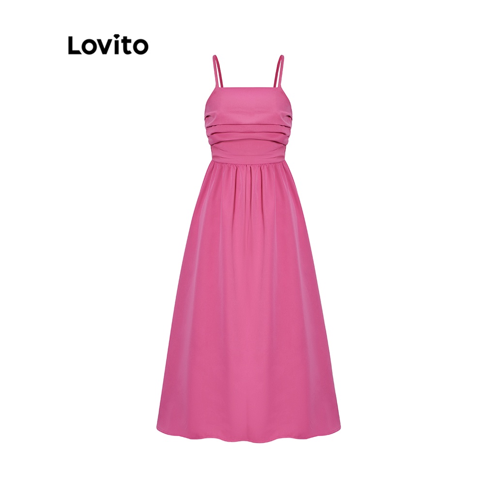 Lovito Đầm xếp ly có khóa kéo màu trơn thường ngày cho Nữ l58ad096 (Hồng/Đen)