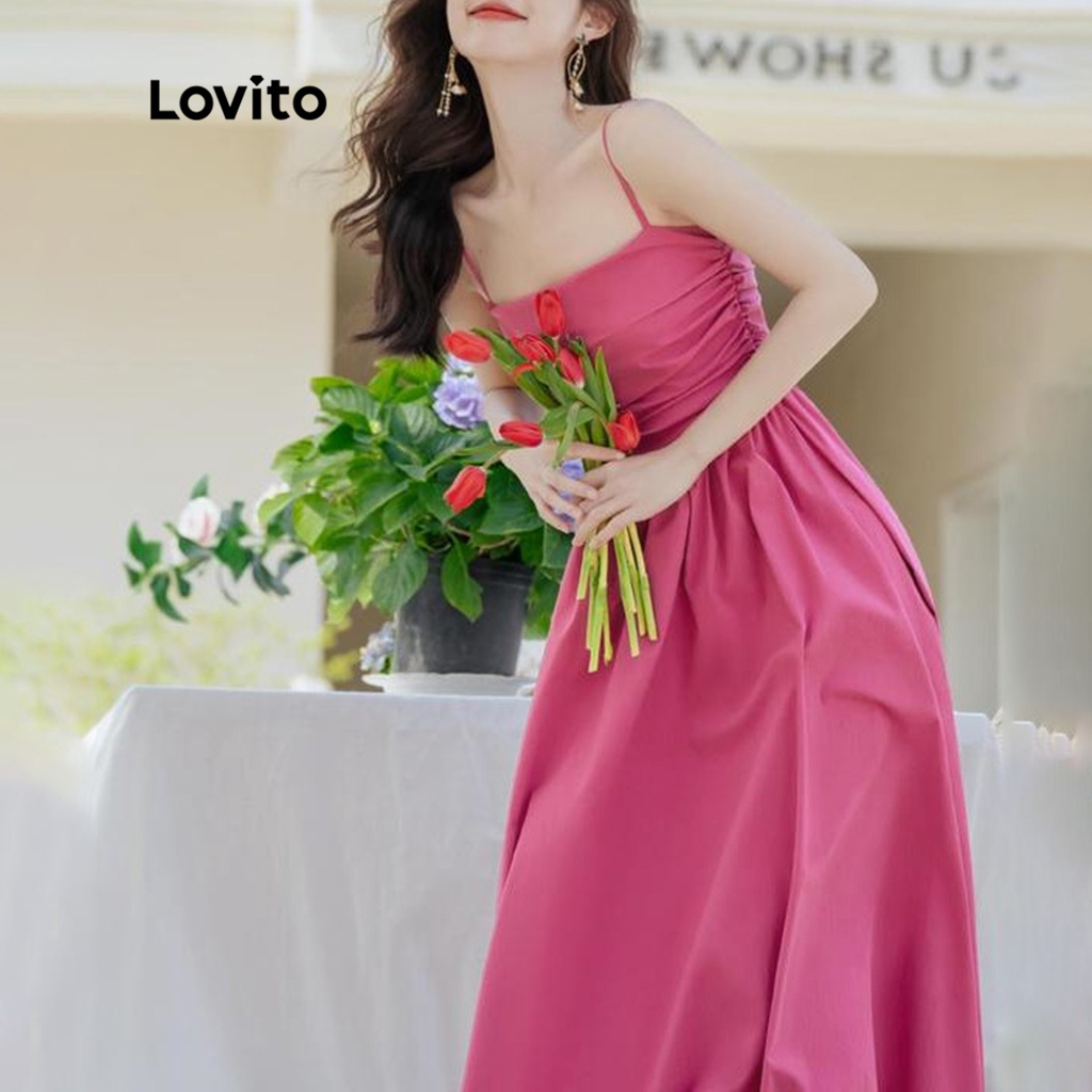 Lovito Đầm trước có khóa kéo màu trơn thanh lịch cho nữ l58ad094 (màu hồng nhạt)