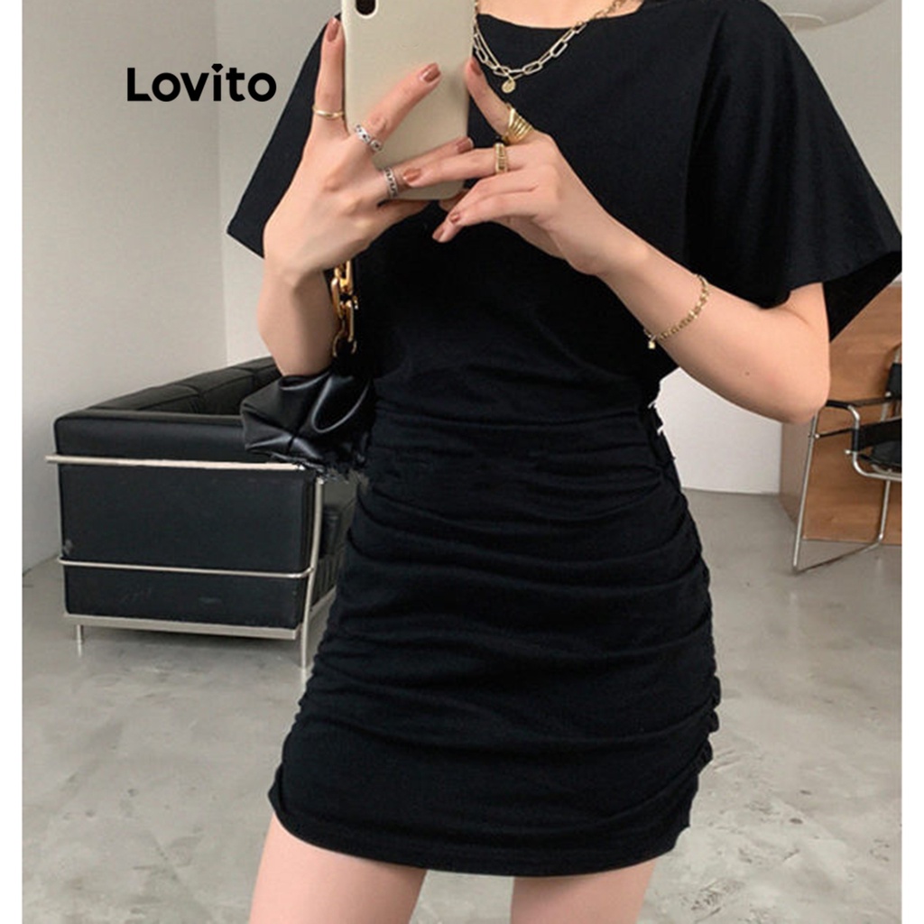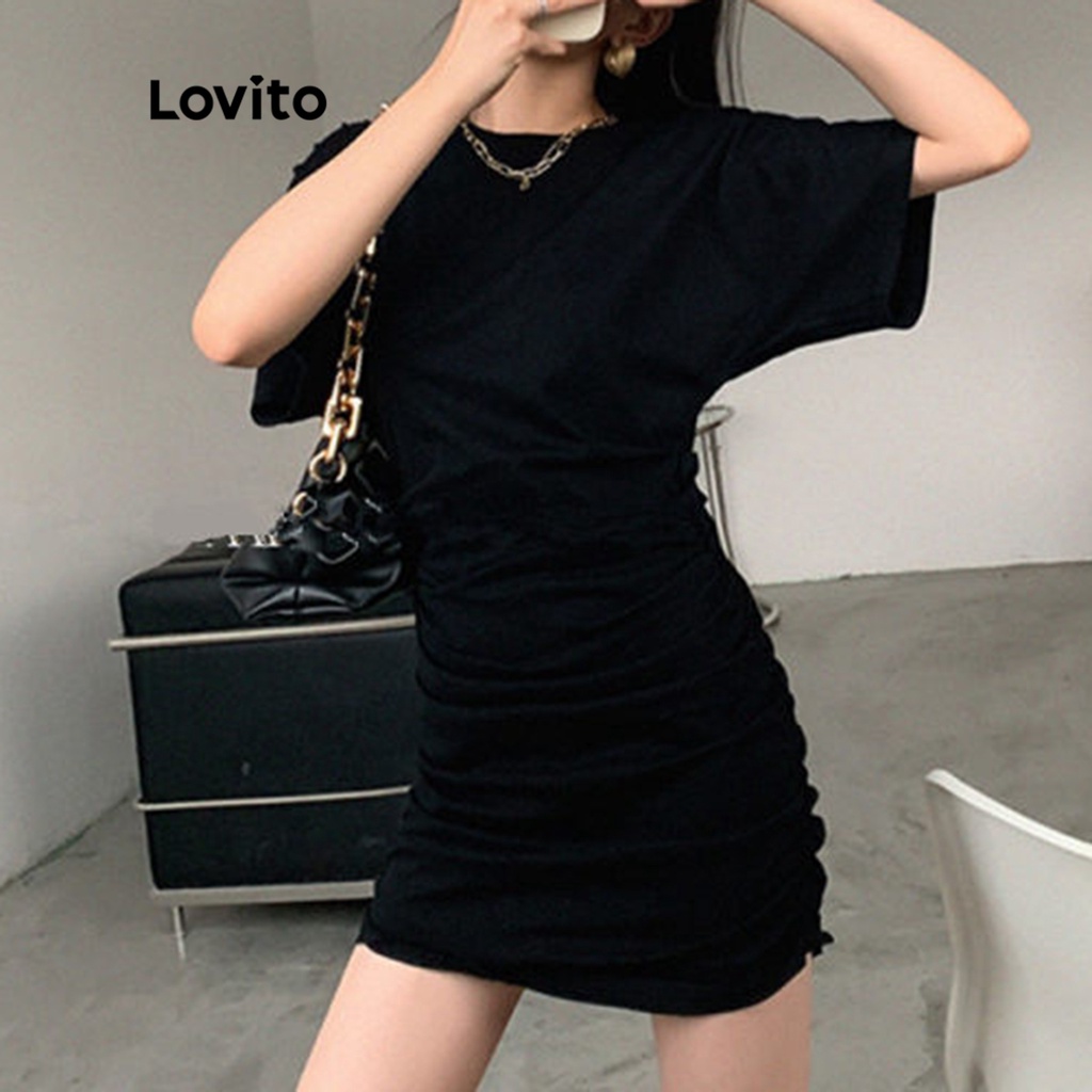 Lovito Đầm dáng chữ A màu trơn thường ngày cho Nữ lne16205 (Màu Đen)