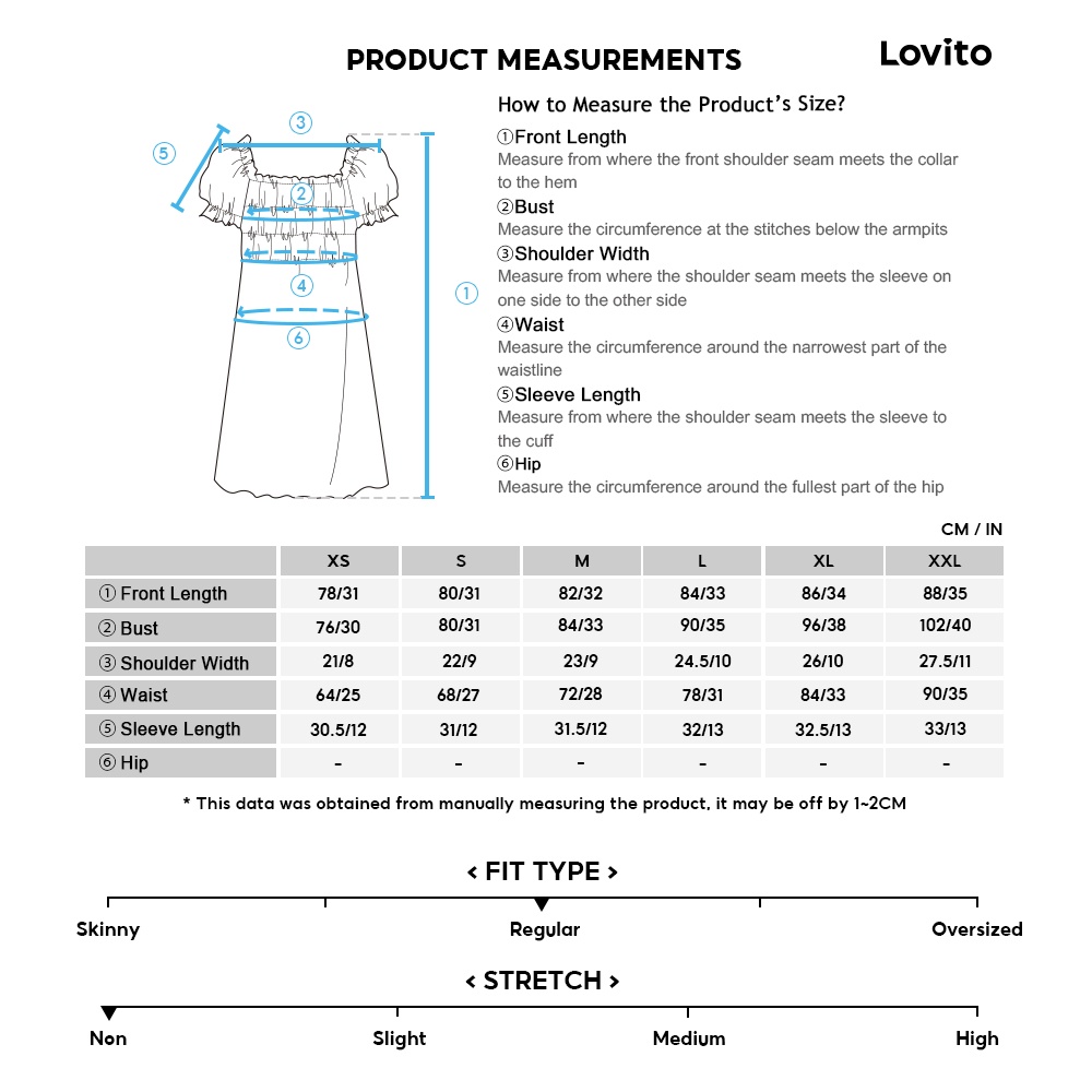 Lovito Đầm tay phồng nút màu tương phản phong cách thường ngày cho Nữ lne19053 (Nhiều màu)
