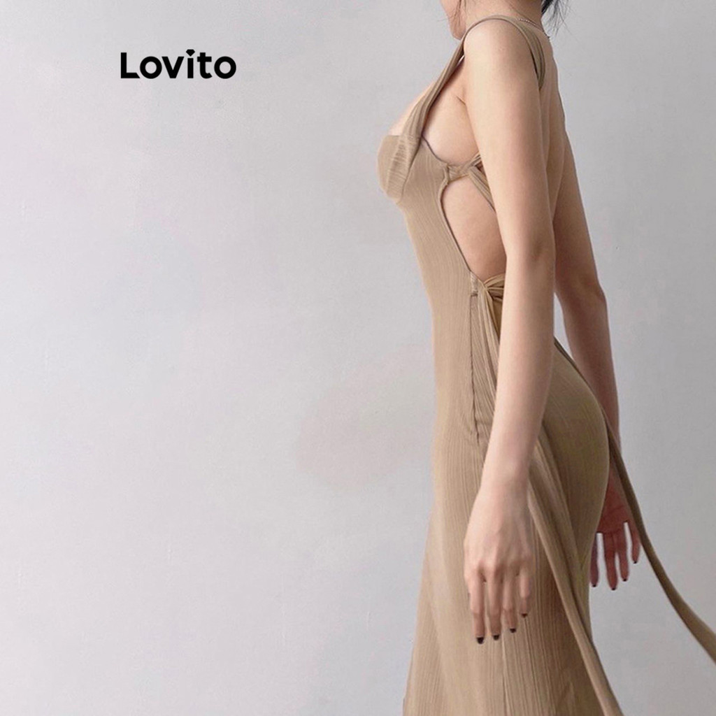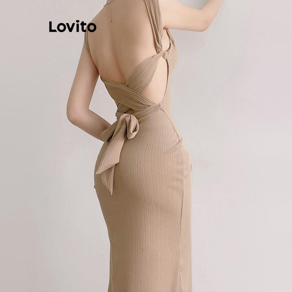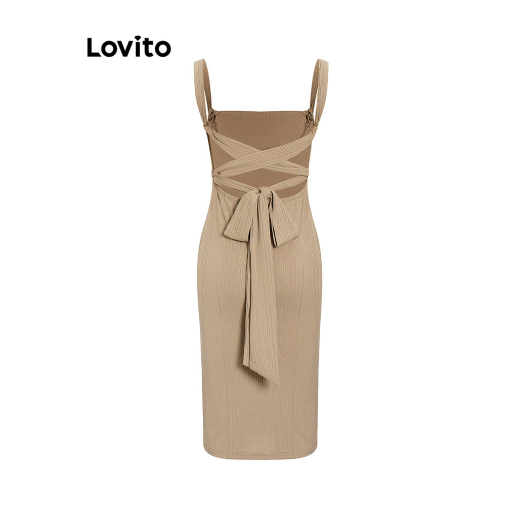 Lovito Đầm thường ngày màu trơn buộc chéo lưng cho Nữ lna19217 (Màu Trắng nhạt)