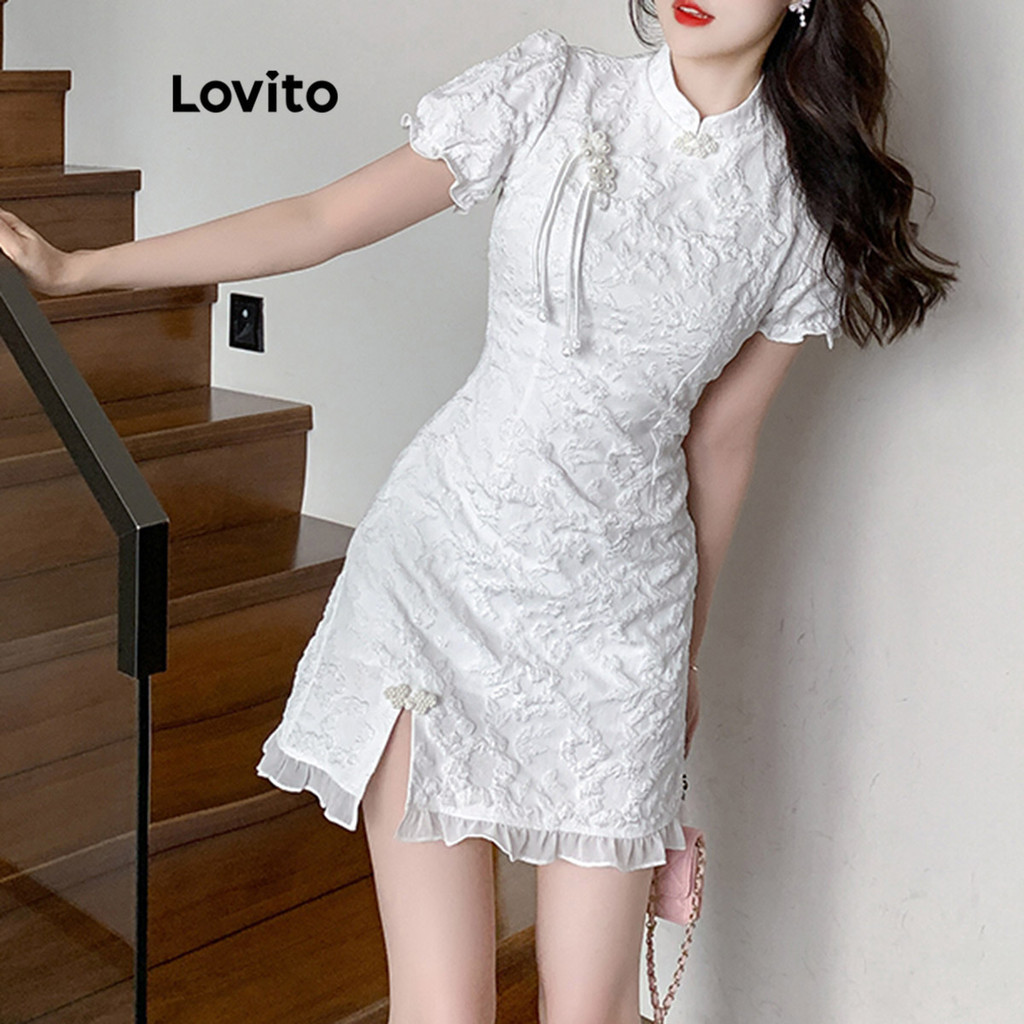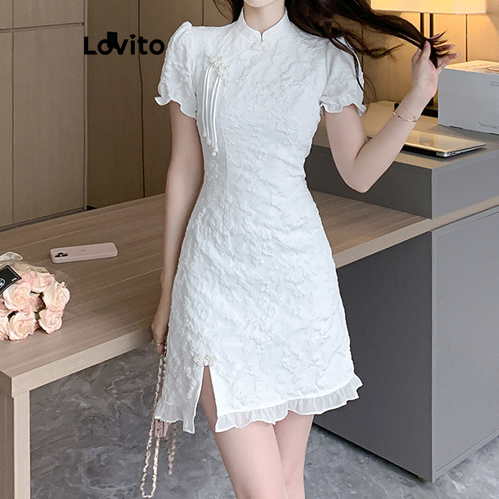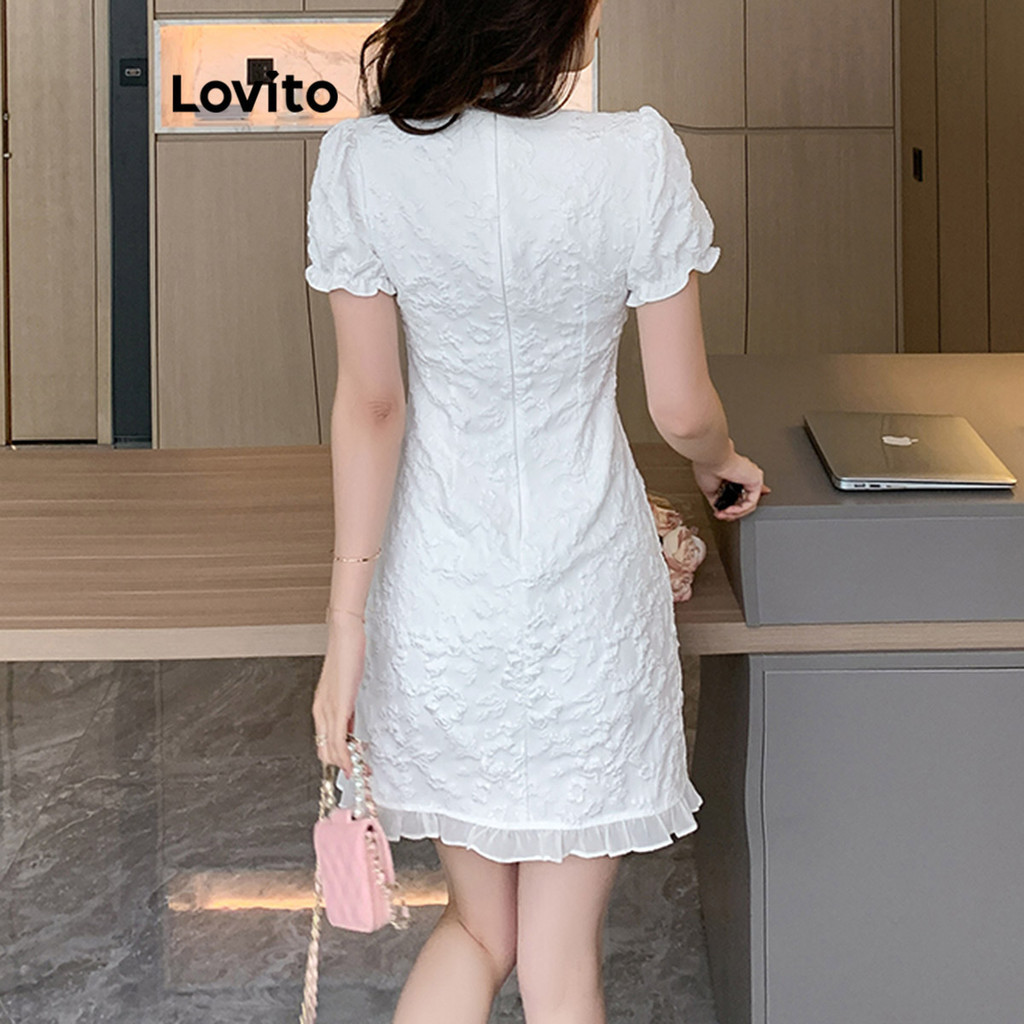 Lovito Đầm Băng quấn tay đèn lồng xếp nếp hoa cho nữ l77ed275 (Nhiều màu)