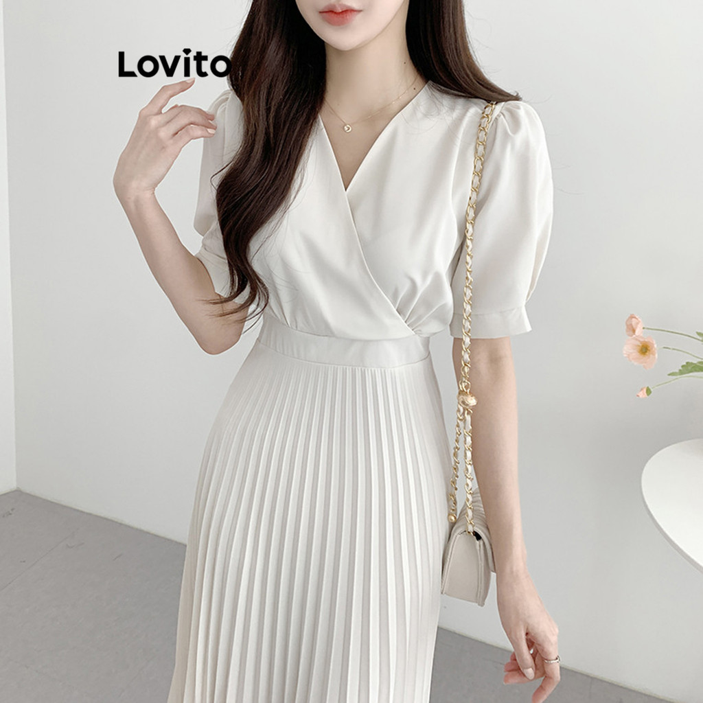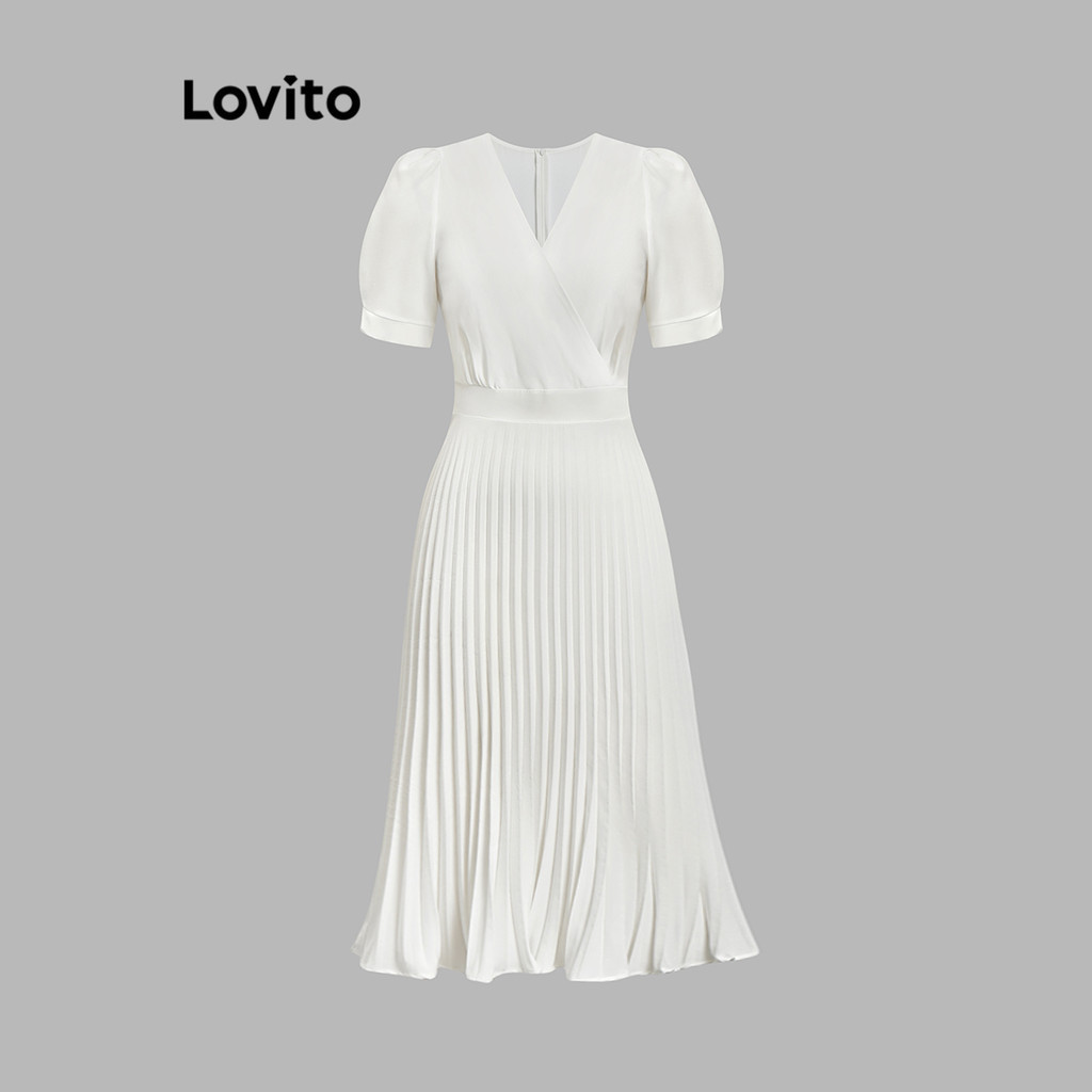 Lovito Đầm Băng quấn tay đèn lồng xếp nếp hoa cho nữ l77ed275 (Nhiều màu)