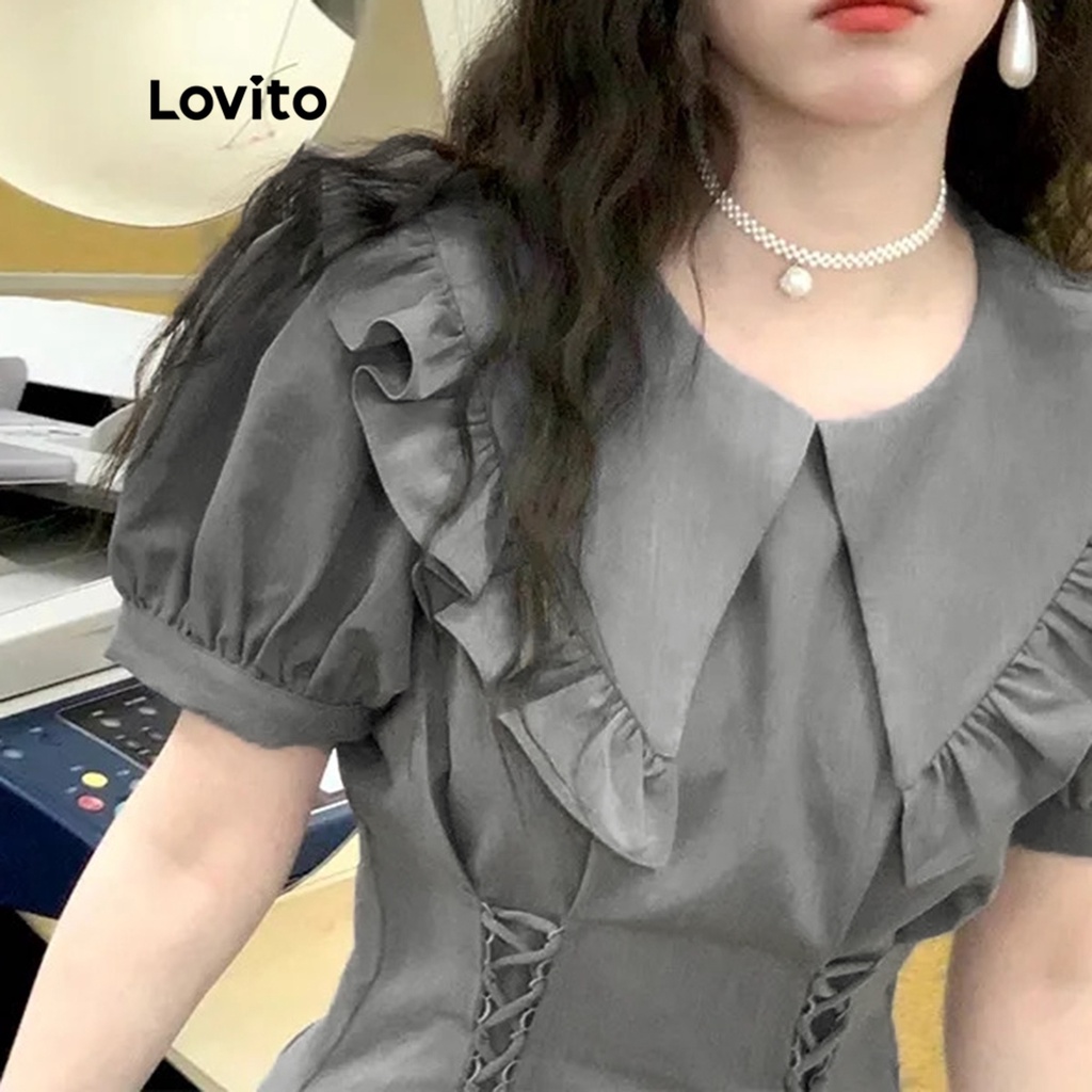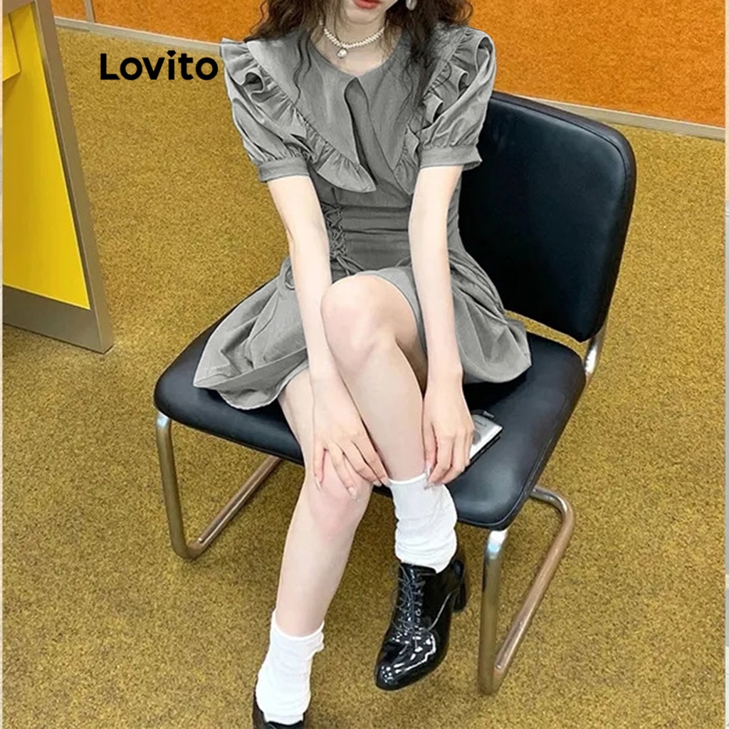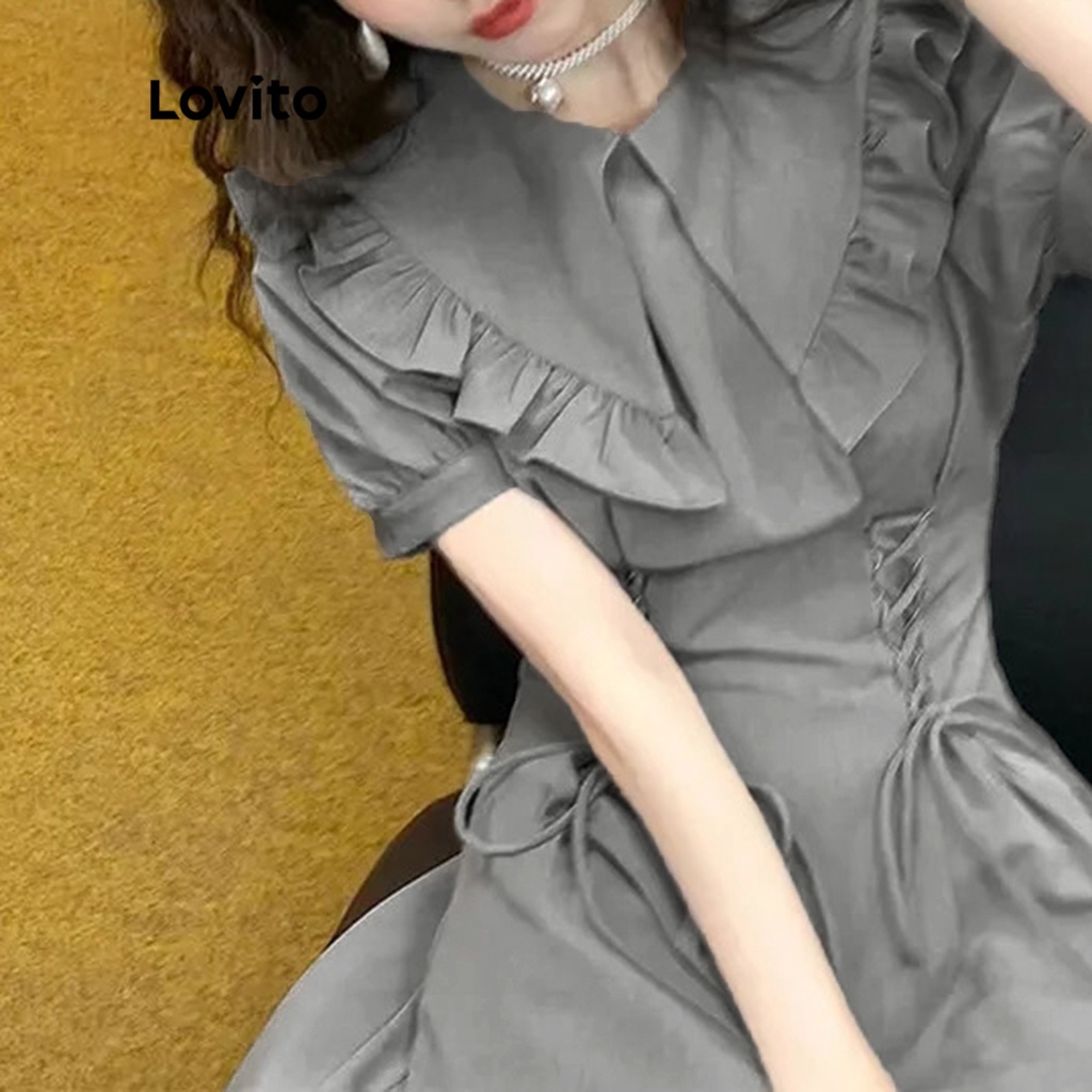 Lovito Đầm thường ngày buộc dây màu trơn dễ thương cho nữ lne21165 (Nhiều màu)