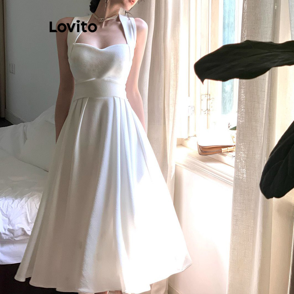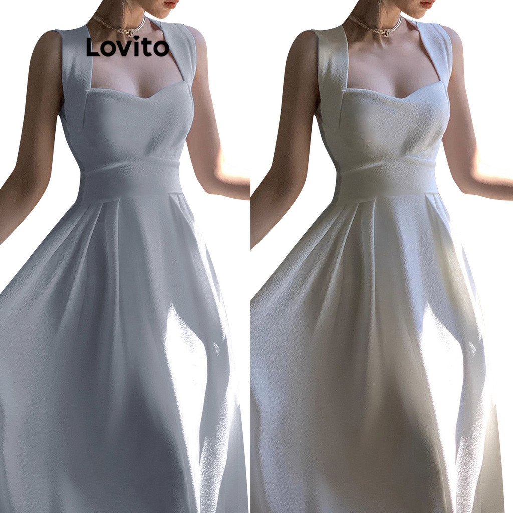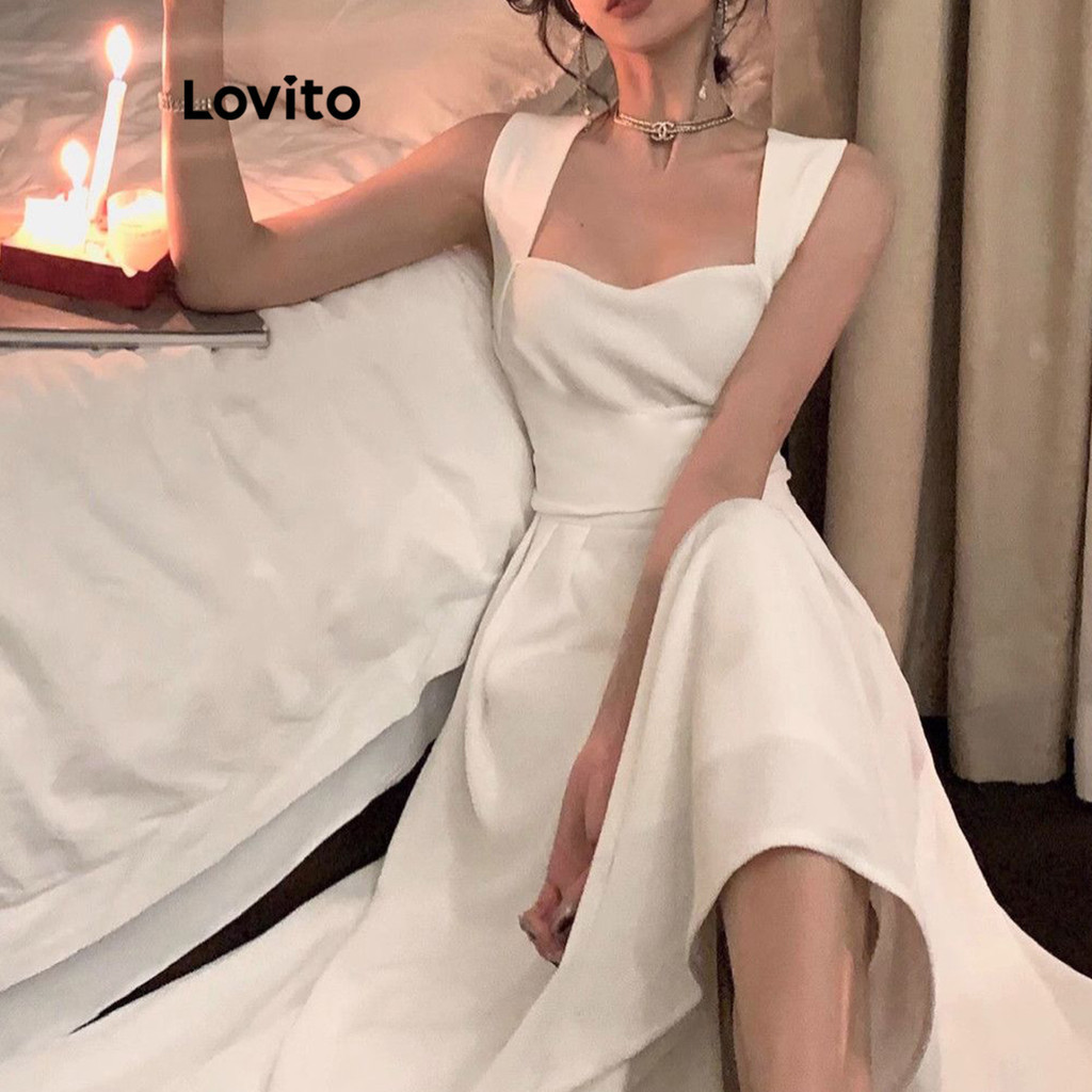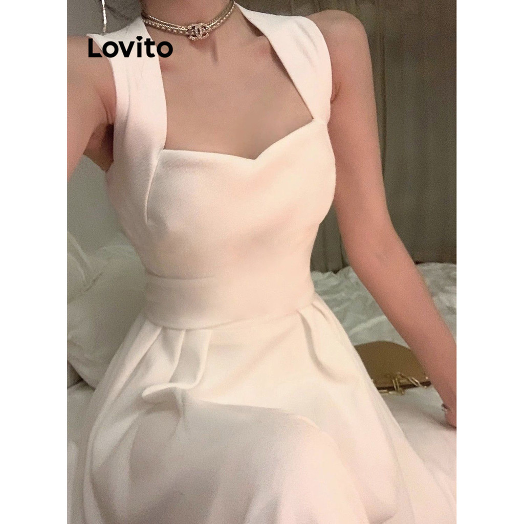 Lovito Đầm thường ngày màu trơn cổ tròn không tay cho nữ lna03038 (Màu Trắng)