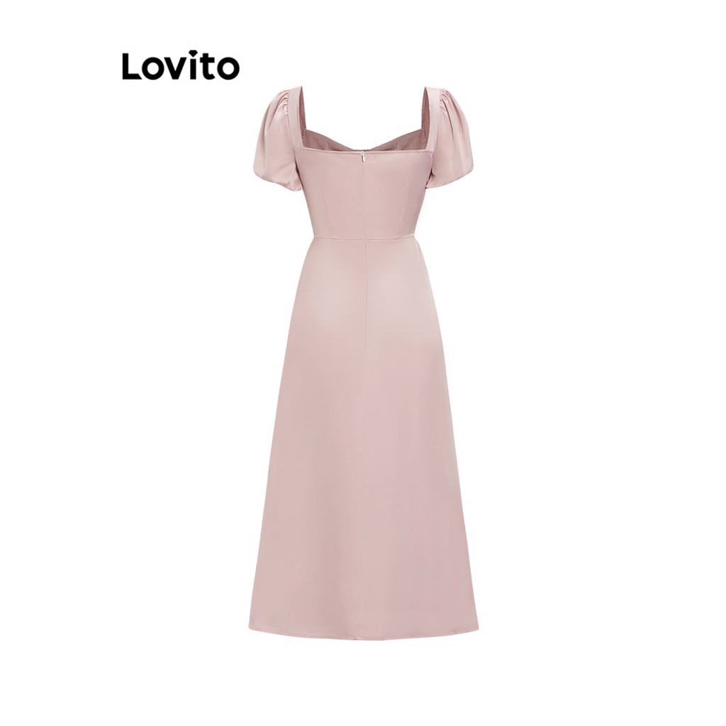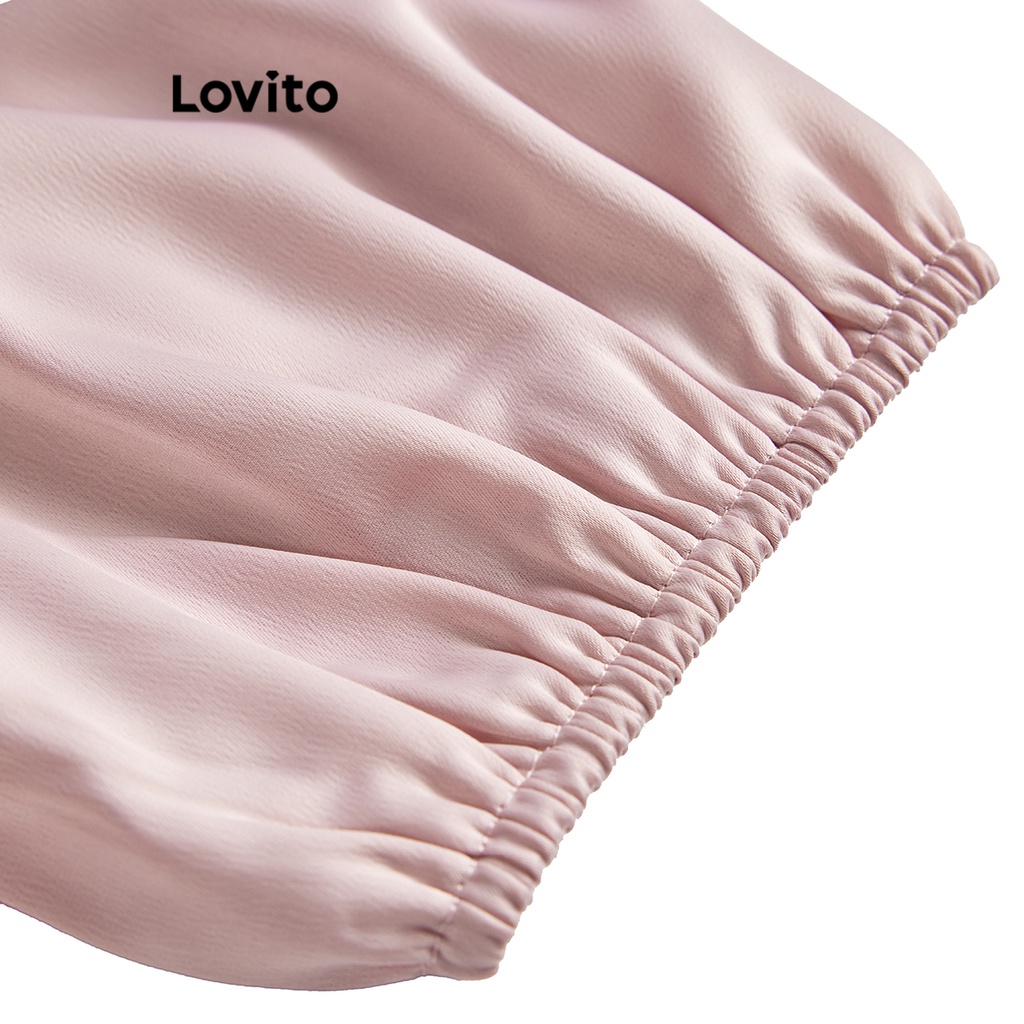 Lovito Đầm xếp ly tay bèo nhún buộc dây thường ngày cho Nữ lne16026 (Nhiều màu)