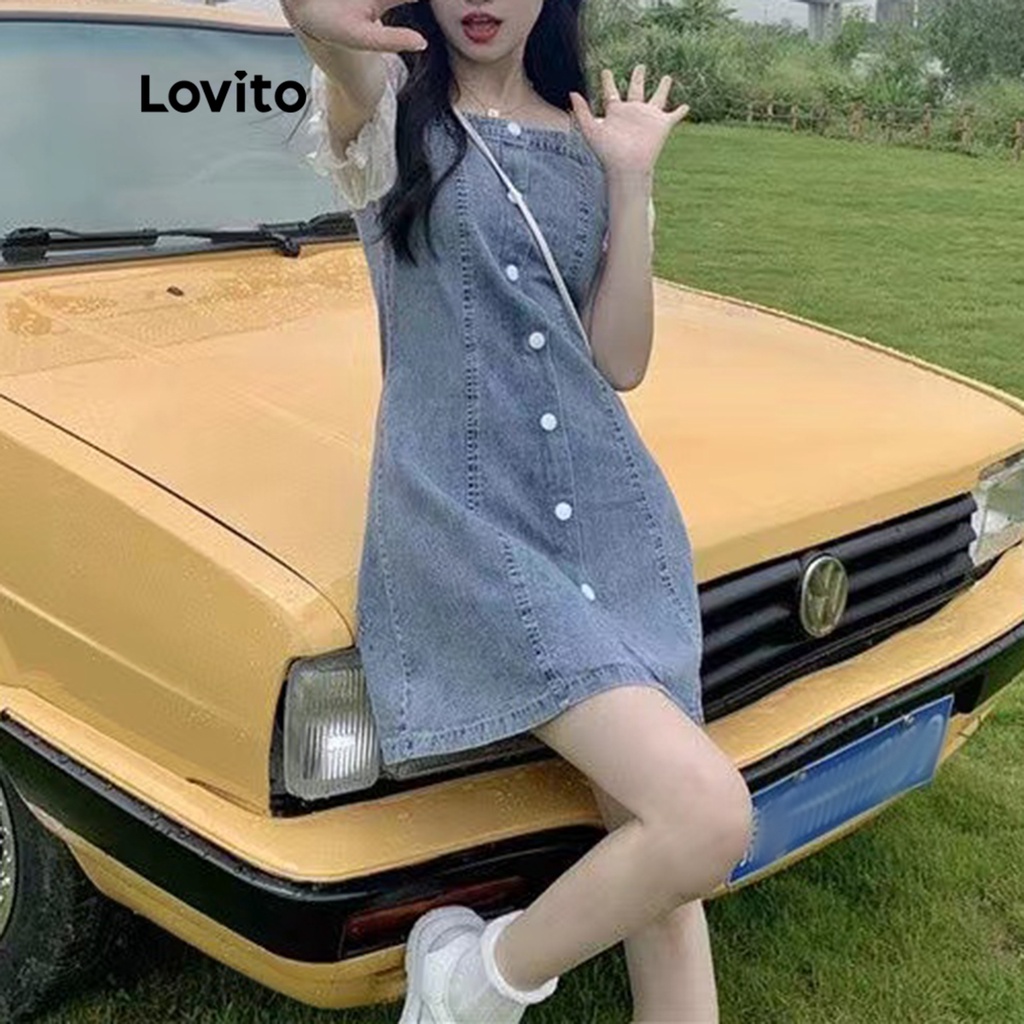 Lovito Đầm thường ngày buộc dây màu trơn dễ thương cho nữ lne21165 (Nhiều màu)