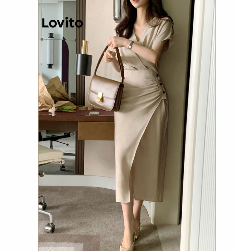 Lovito Đầm trước có khóa kéo màu trơn thanh lịch cho nữ l58ad094 (màu hồng nhạt)
