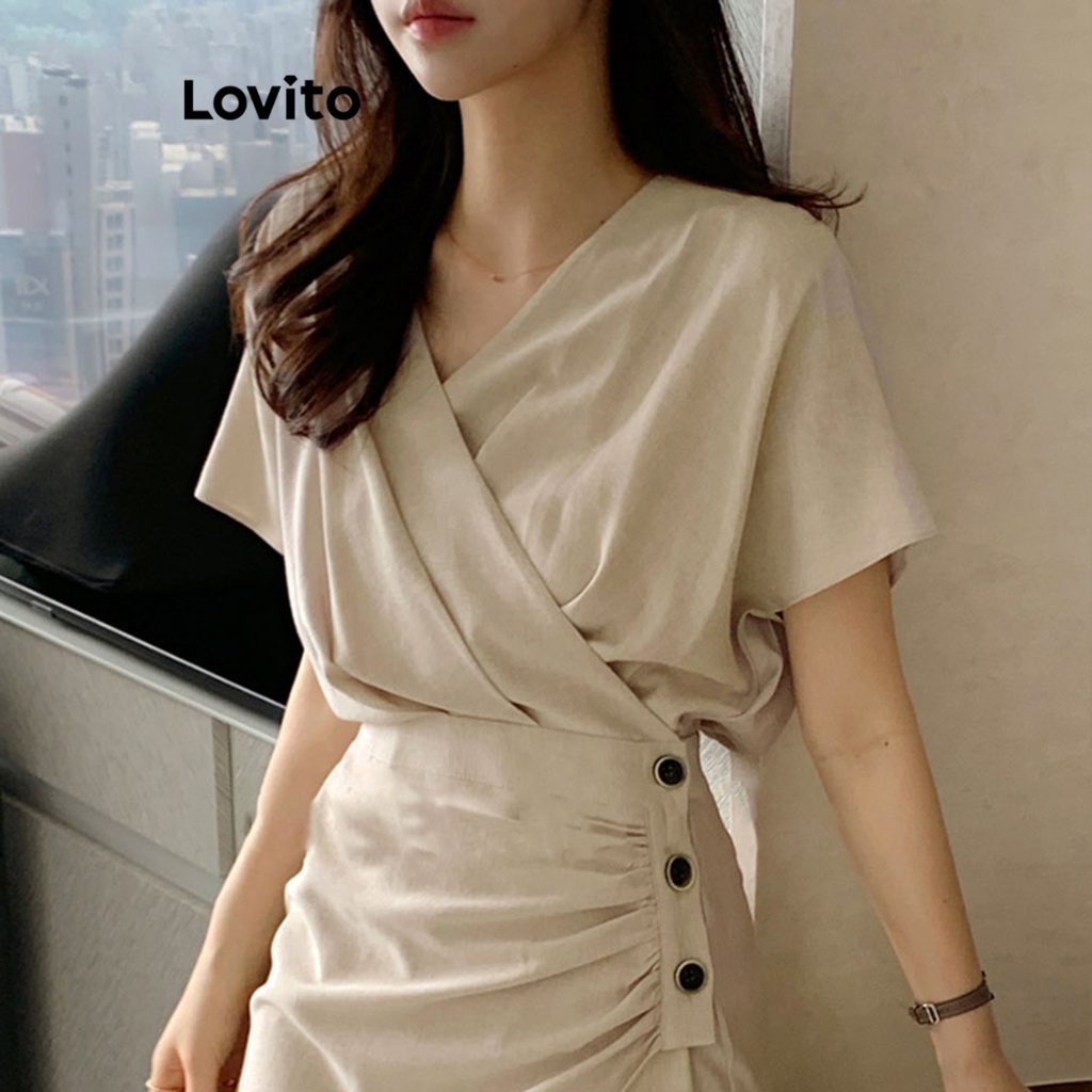 Lovito Đầm thường ngày màu trơn buộc chéo lưng cho Nữ lna19217 (Màu Trắng nhạt)