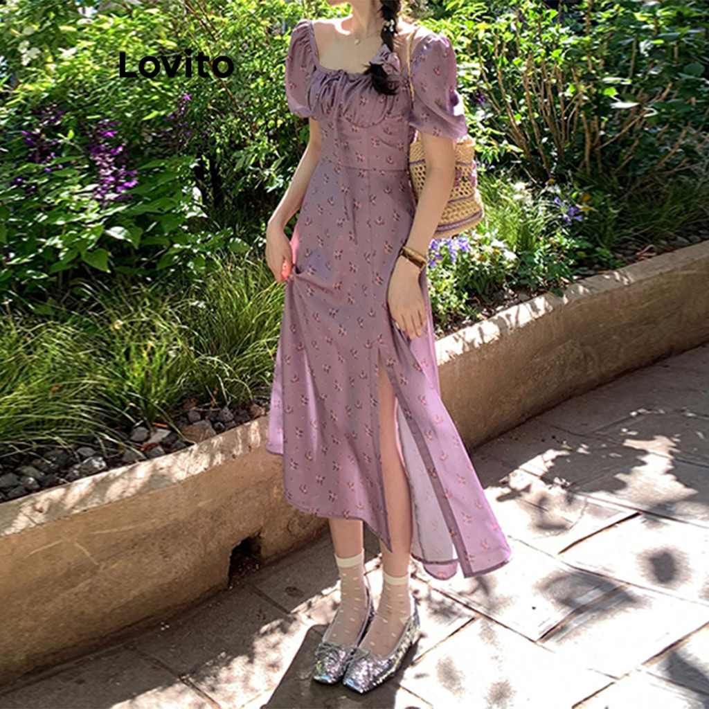 Lovito Đầm nữ có khóa kéo viền ren thêu hoa thanh lịch lne13057 (Nhiều màu)
