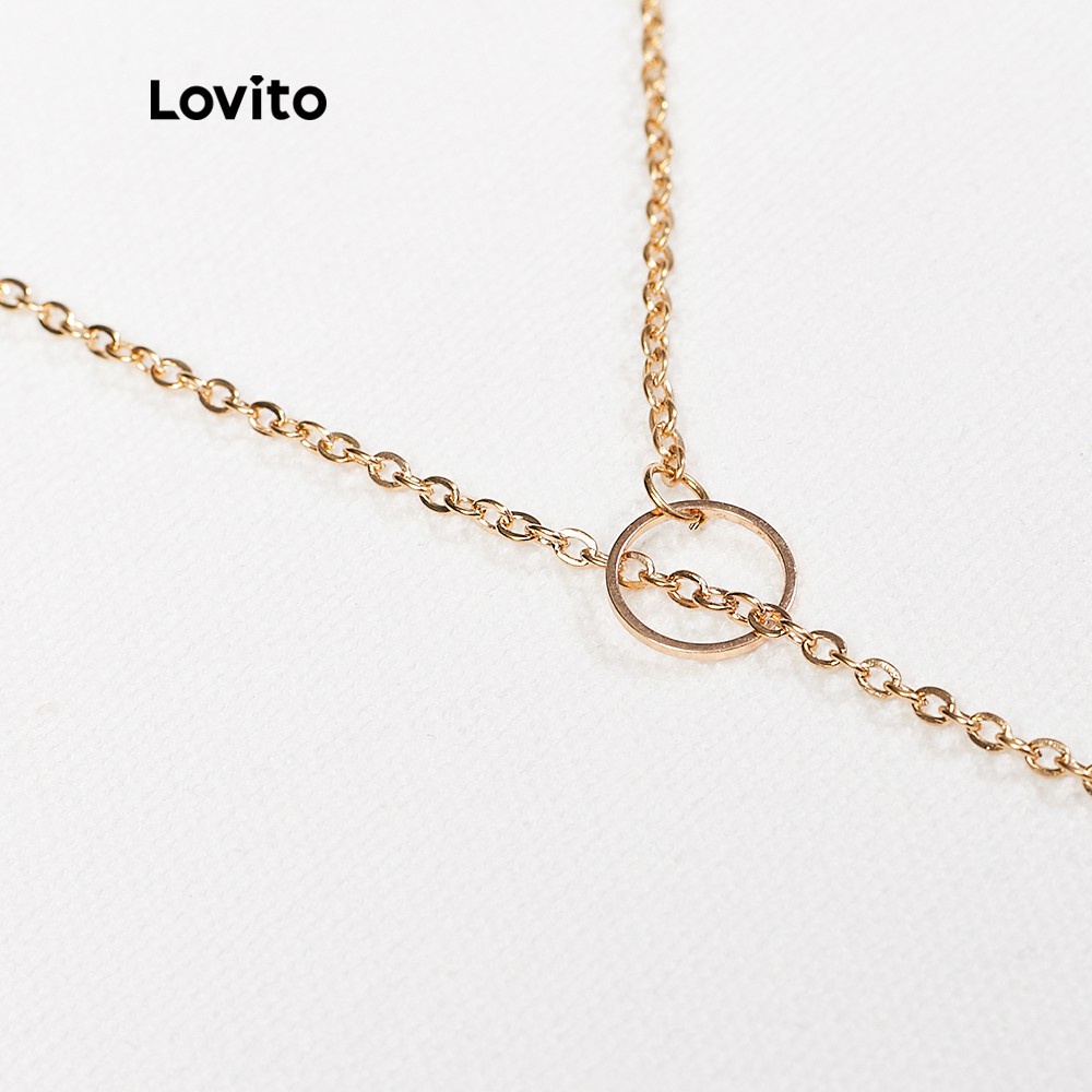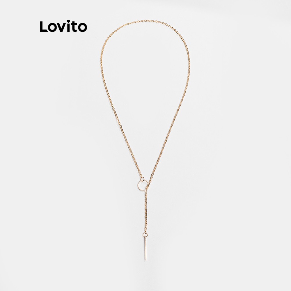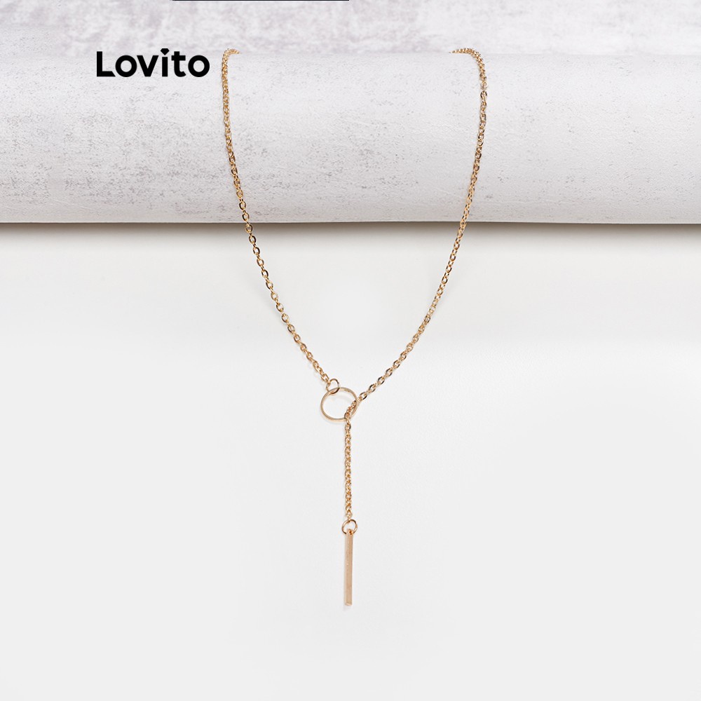 Lovito Vòng cổ mặt dây chuyền hình học thường ngày cho Nữ Vòng cổ mạ vàng cơ bản 18K hypoalou l66ad017 (Màu Vàng)