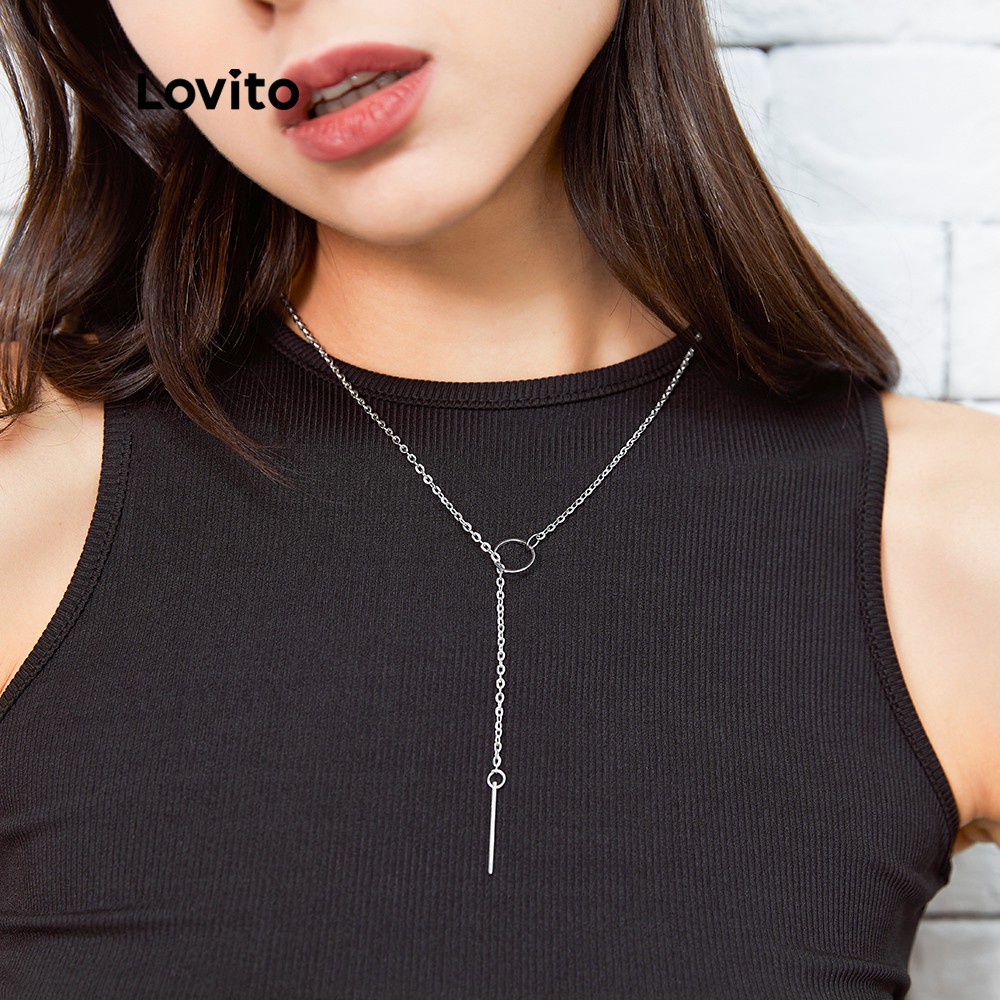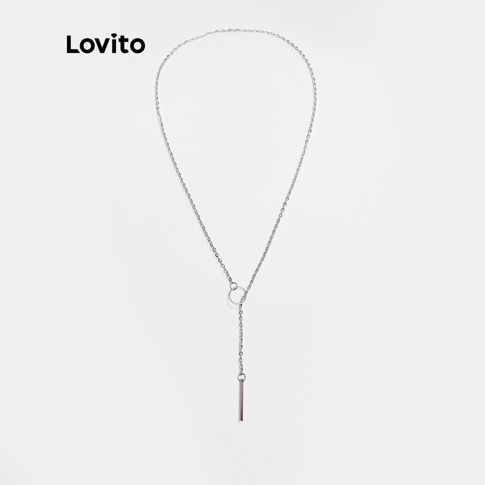 Lovito Vòng cổ dây chuyền Kim cương giả màu trơn thanh lịch cho nữ lfa08646 (màu bạc)