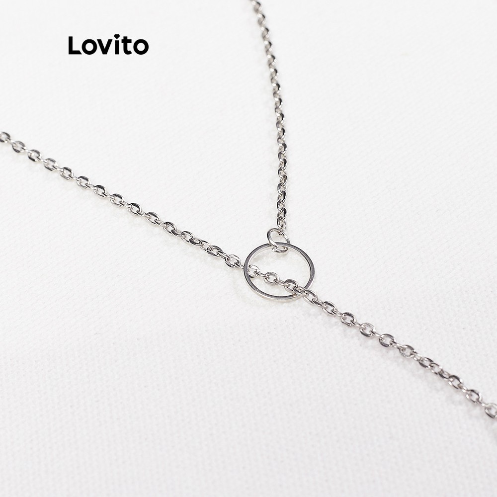 Lovito Vòng cổ dây chuyền hợp kim với nhẫn kim loại cho nữ a07010 (Vàng/Bạc)