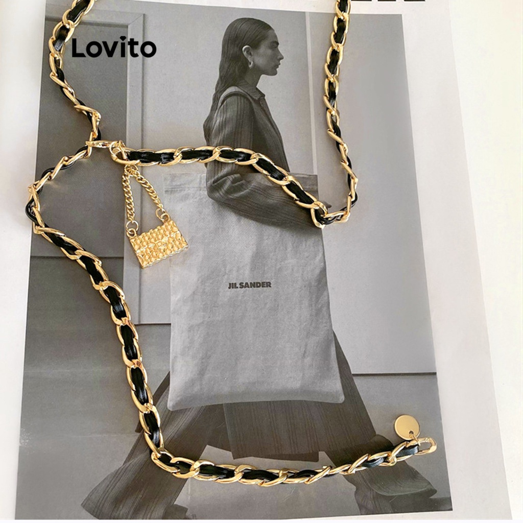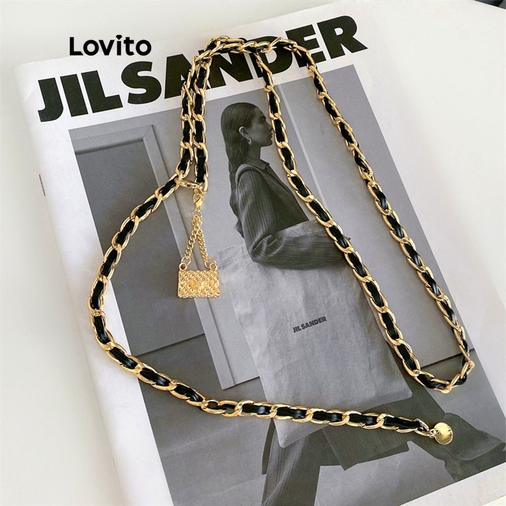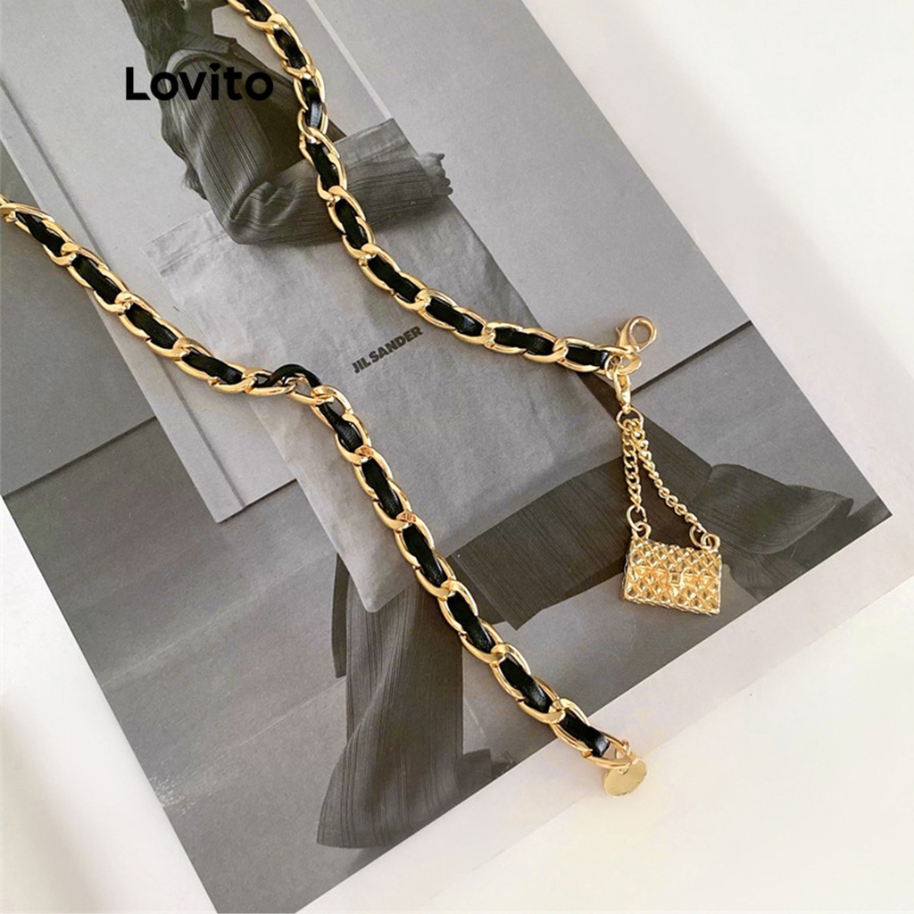 Lovito trang sức thắt lưng thường ngày kim loại hình học màu trơn cho nữ l57ad068 (Cà phê/Nâu/Kaki nhạt/Đen)