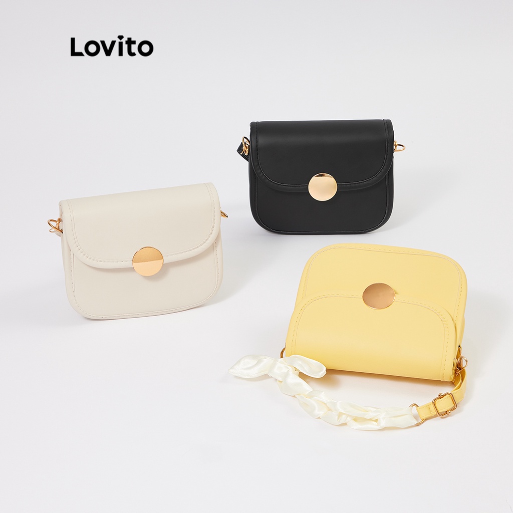 Lovito Túi đeo vai mini có dây xích màu trơn thường ngày cho Nữ l48ba011 (trắng/hồng/tím/xanh lá/Đen)
