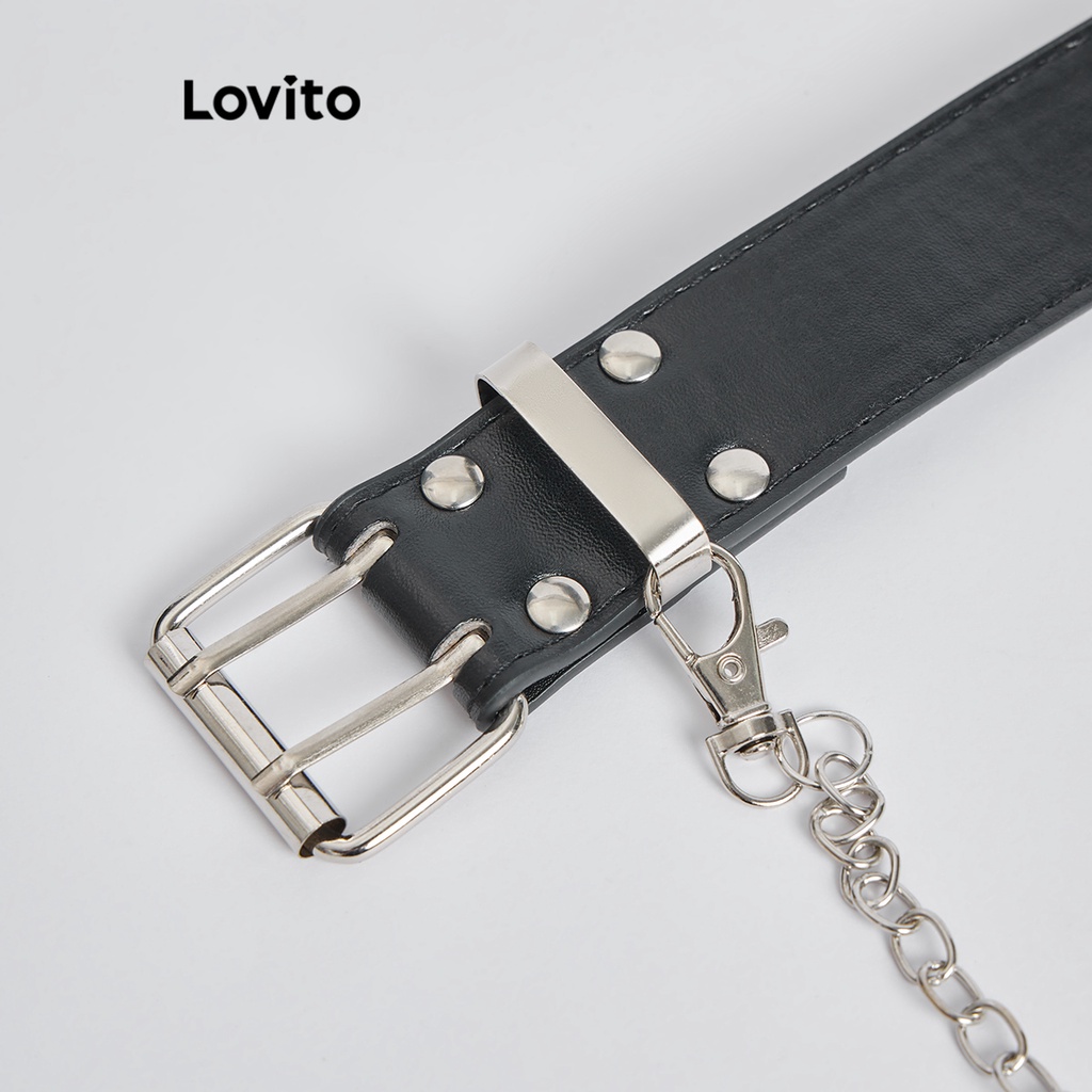Lovito trang sức thắt lưng thường ngày kim loại hình học màu trơn cho nữ l57ad068 (Cà phê/Nâu/Kaki nhạt/Đen)