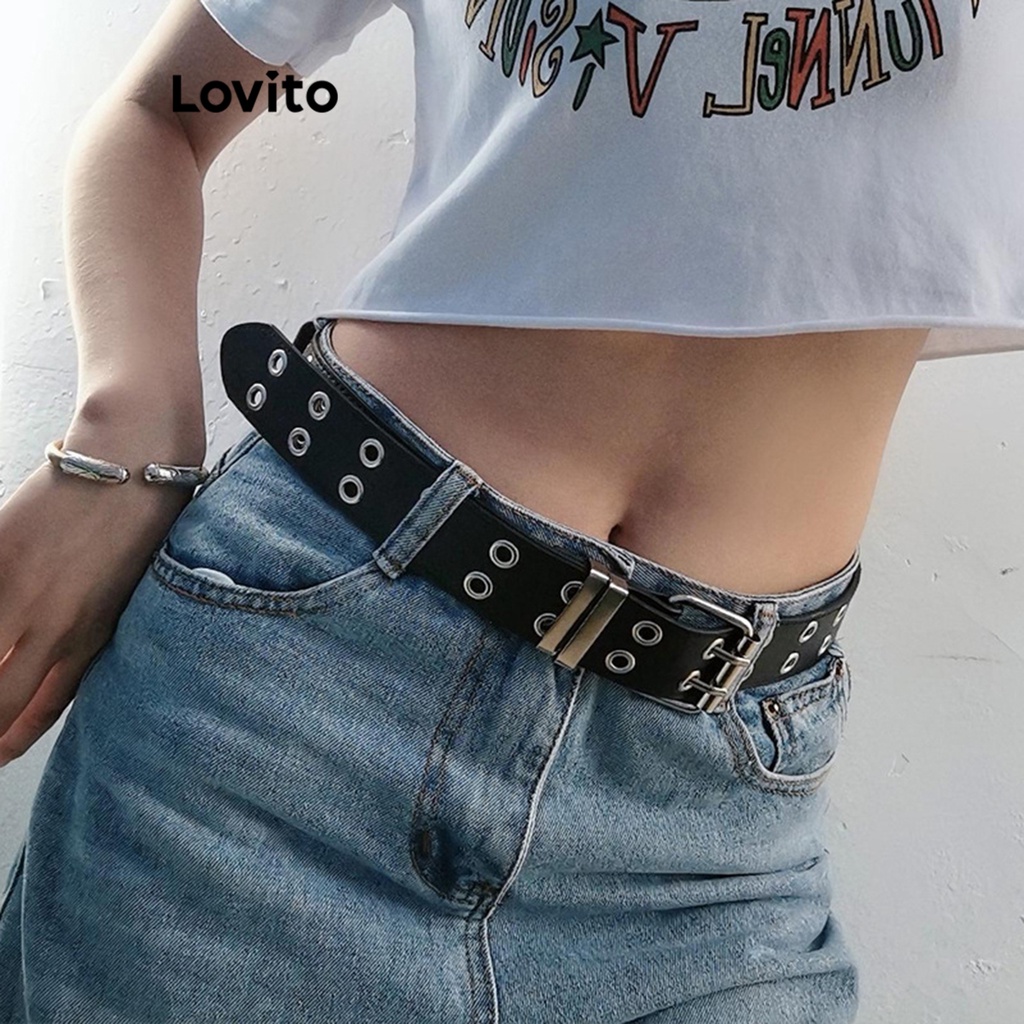 Lovito Thắt lưng nữ thường ngày bằng kim loại cơ bản l60ad099 (Kaki/Nâu/Đen)