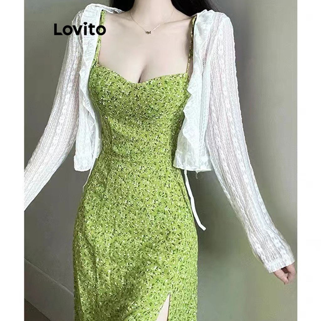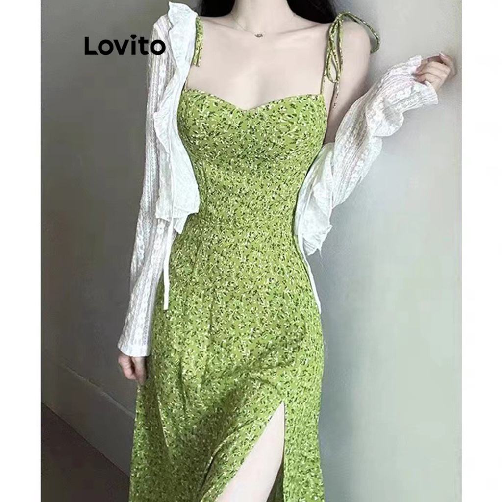 Lovito Đầm hoa cắt dây kéo phong cách thường ngày cho Nữ l55ad054 (Xanh nhạt)