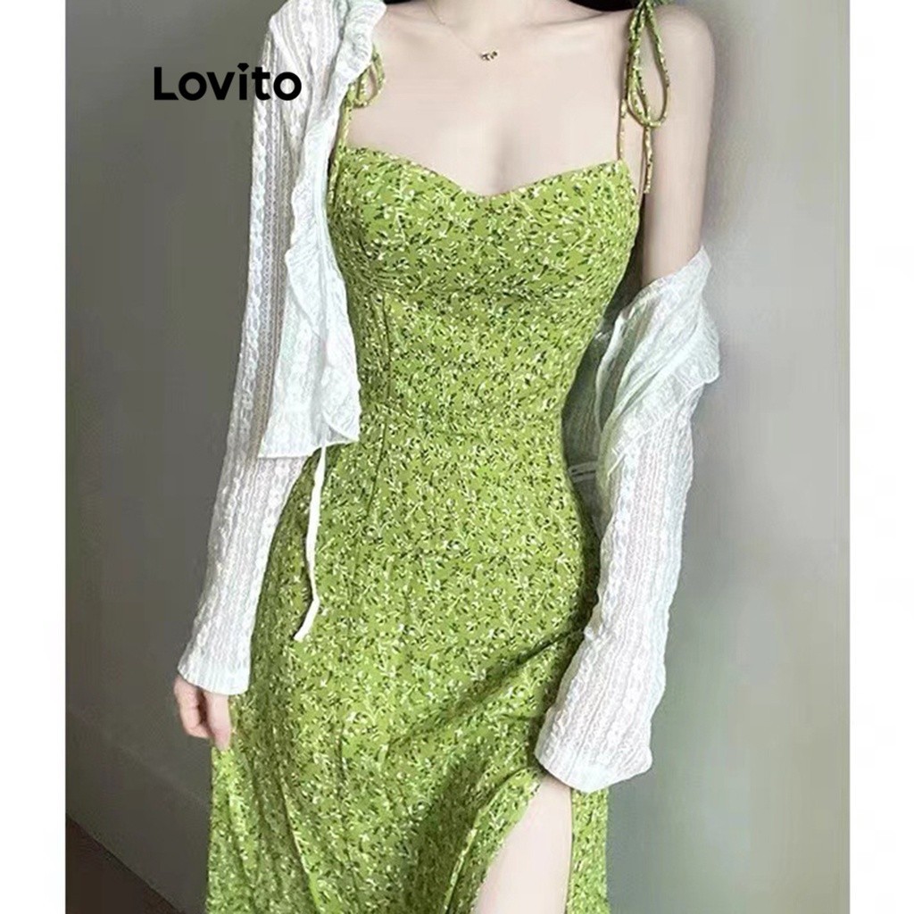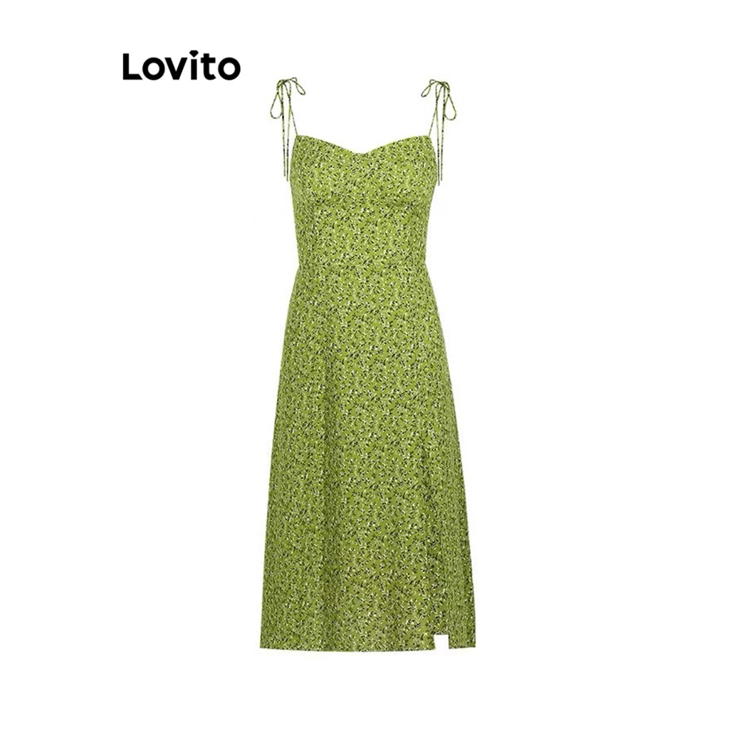 Lovito Đầm nữ dải băng phía trước hở hoa nhỏ thường ngày l56ed110 (màu xanh dương)