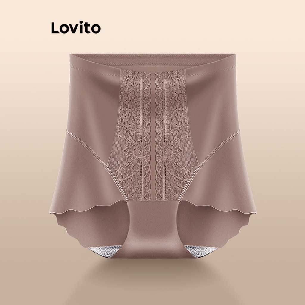 Lovito Đồ định hình đồ nâng mông cạp cao màu trơn l004014 (màu xanh lá/màu be/Màu xanh lá cây)