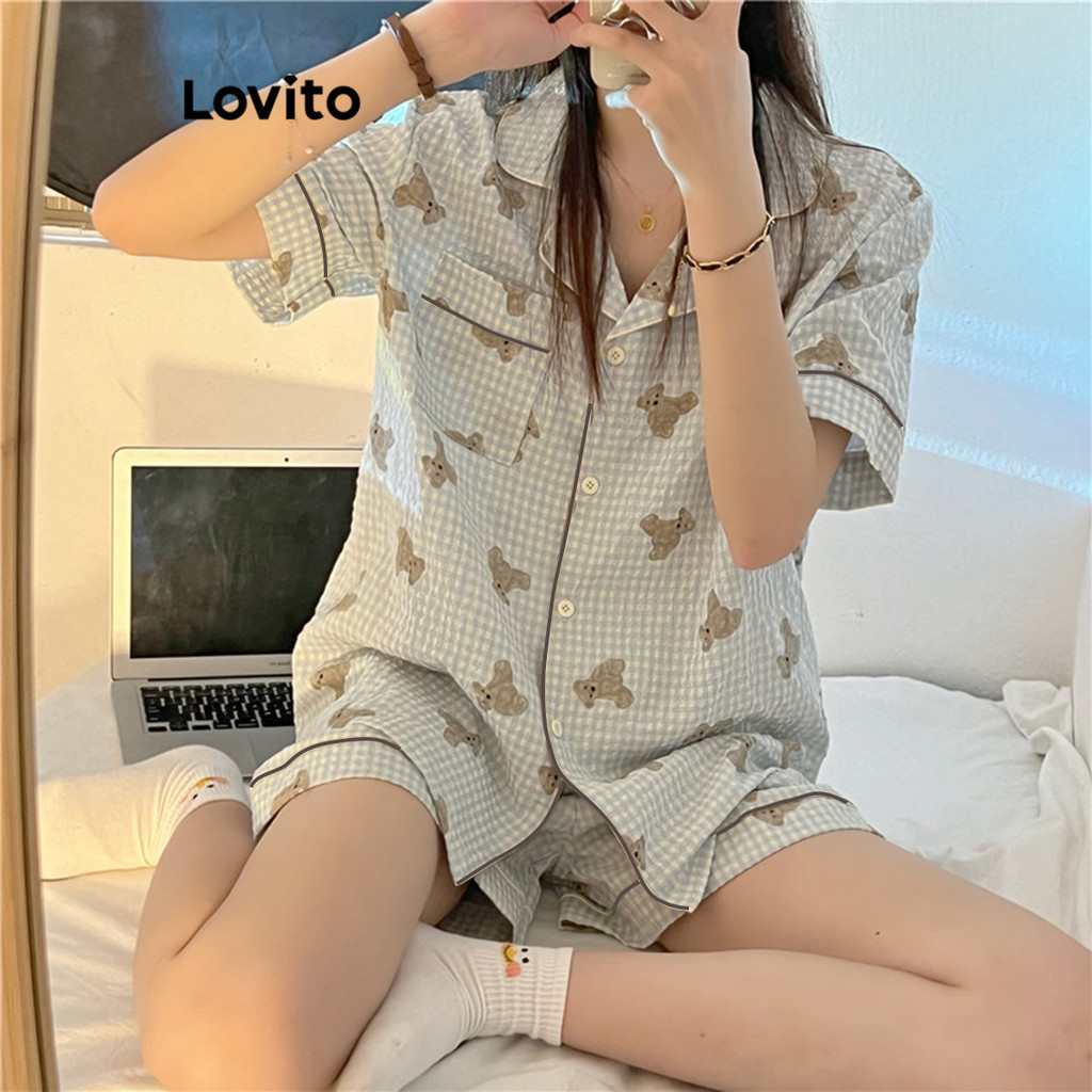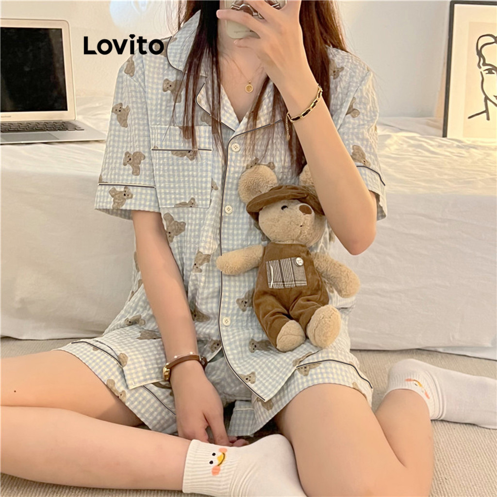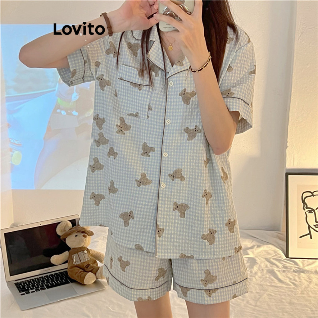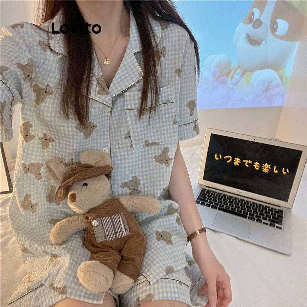 Lovito đồ ngủ nữ phong cách hoạt hình thường ngày lna24137 (màu xanh dương)