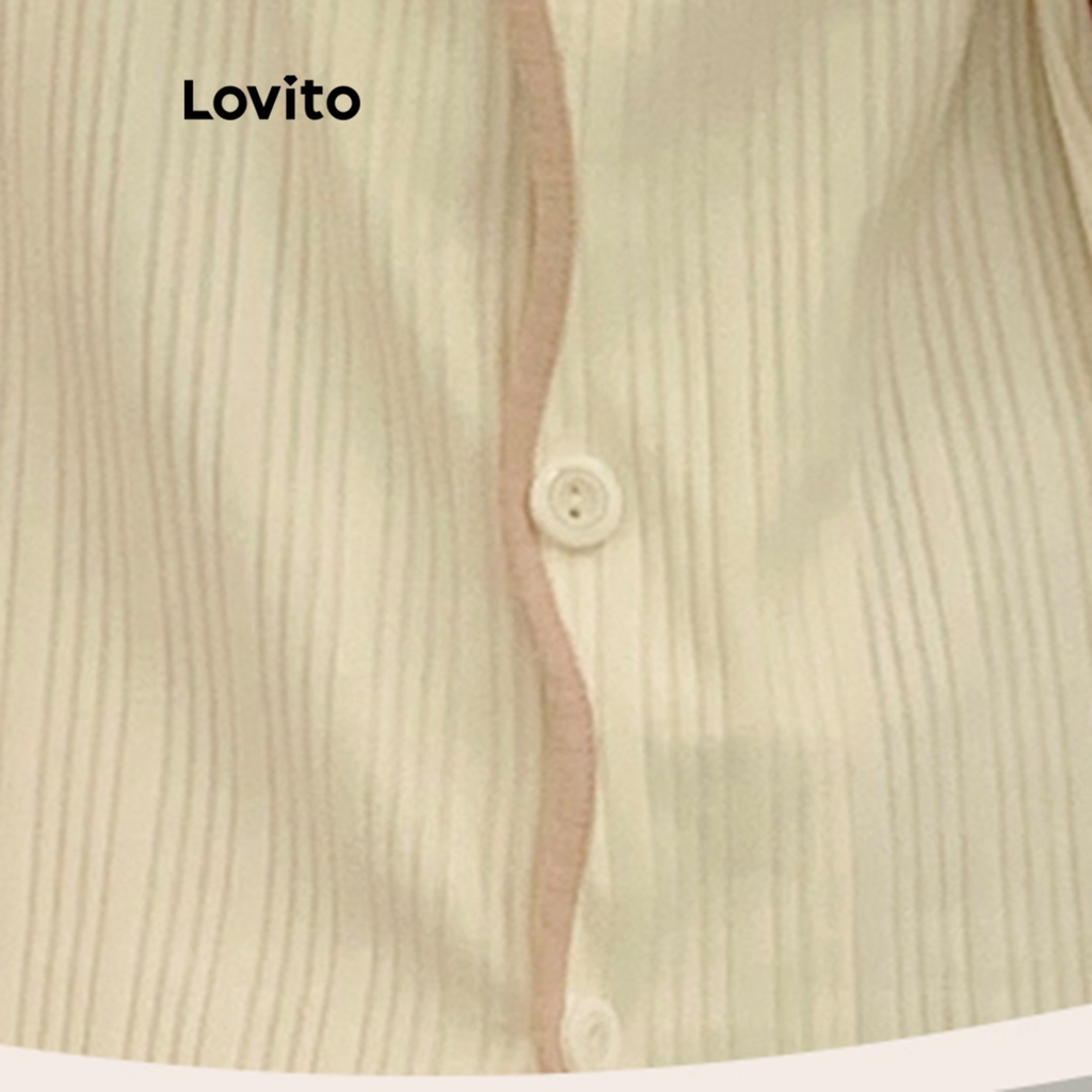 Lovito Bộ đồ ngủ nữ tay ngắn cổ có túi viền màu thường ngày lna12020 (Màu Đen)