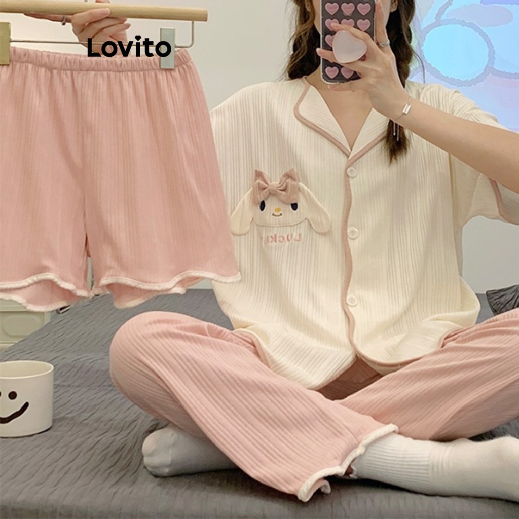 Lovito đồ ngủ nữ thêu chữ phong cách thường ngày Áo ngủ lna27050 (Trắng/Hồng/Xanh dương)