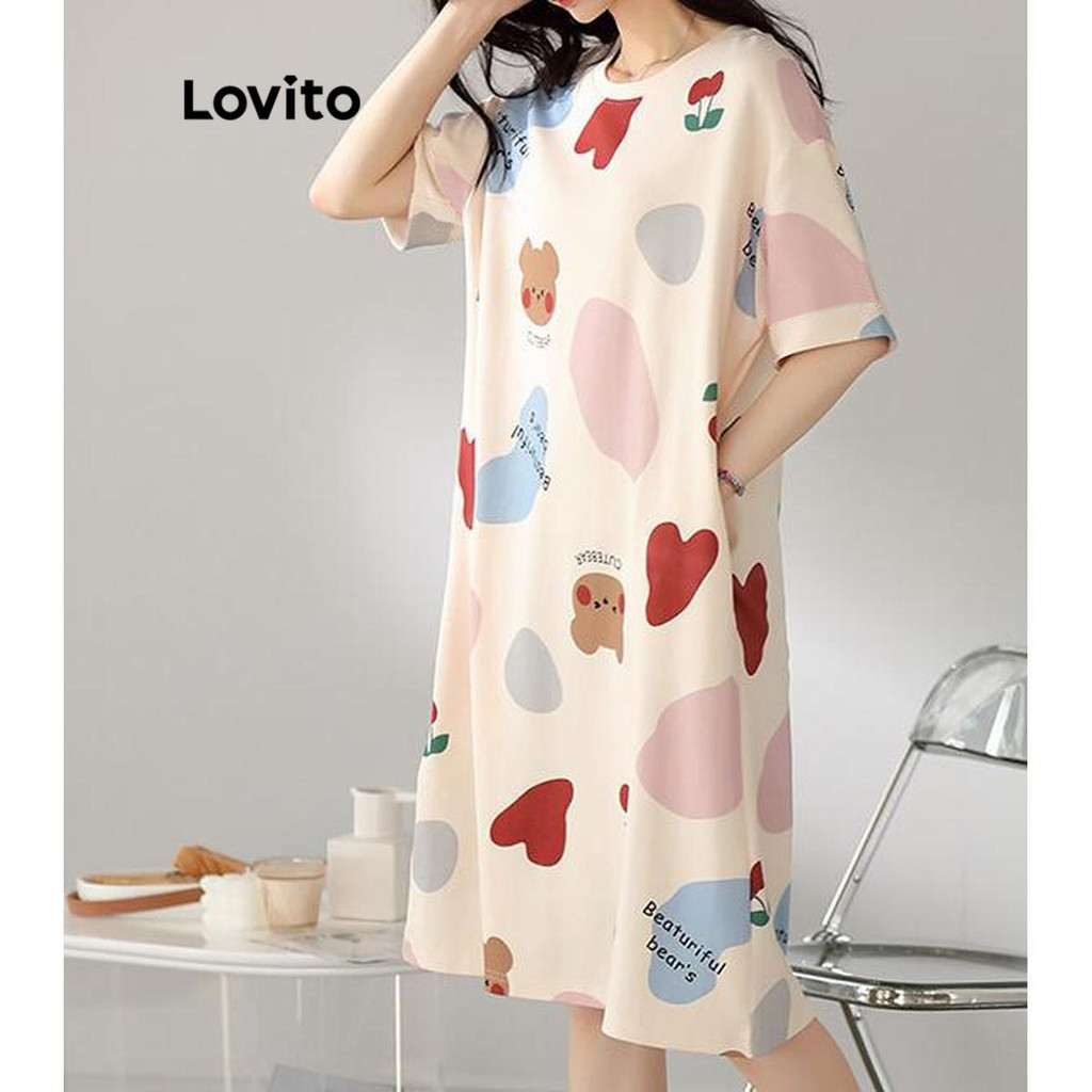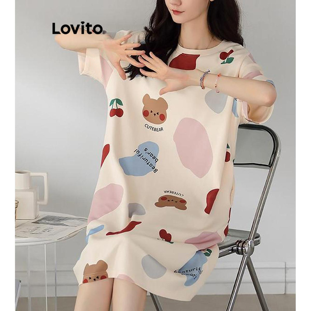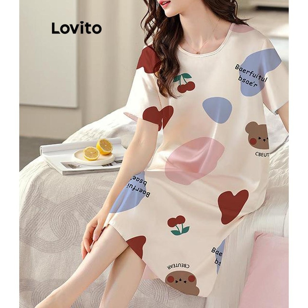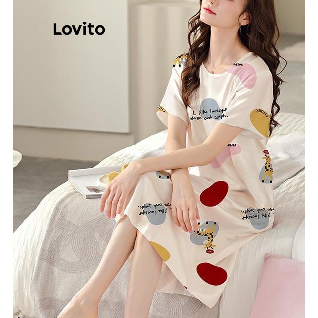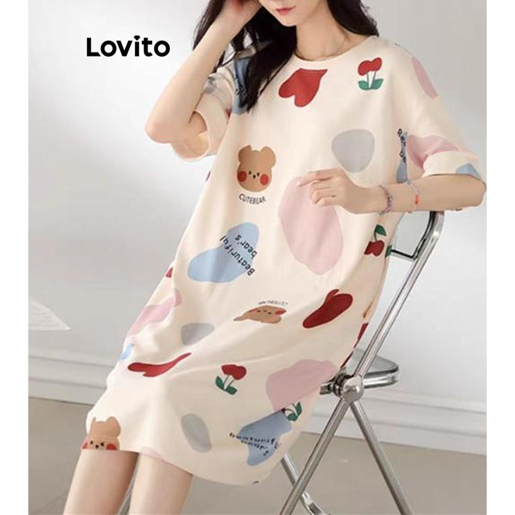 Lovito Đồ Ngủ Nữ Cơ Bản khối màu hoạt hình thường ngày Áo ngủ lna27256 (Màu Trắng)