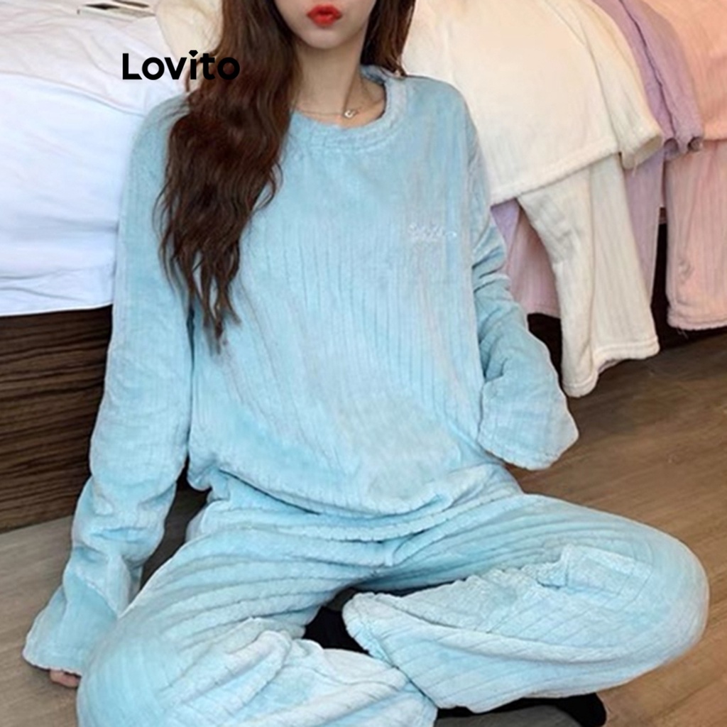 Lovito đồ ngủ nữ phong cách hoạt hình thường ngày lna24137 (màu xanh dương)