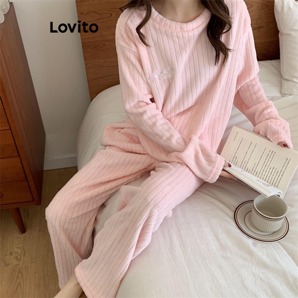 Lovito Áo ngủ vải sa tanh có nút Bỏ Túi màu trơn thường ngày cho Nữ lna18007 (Màu Hồng)