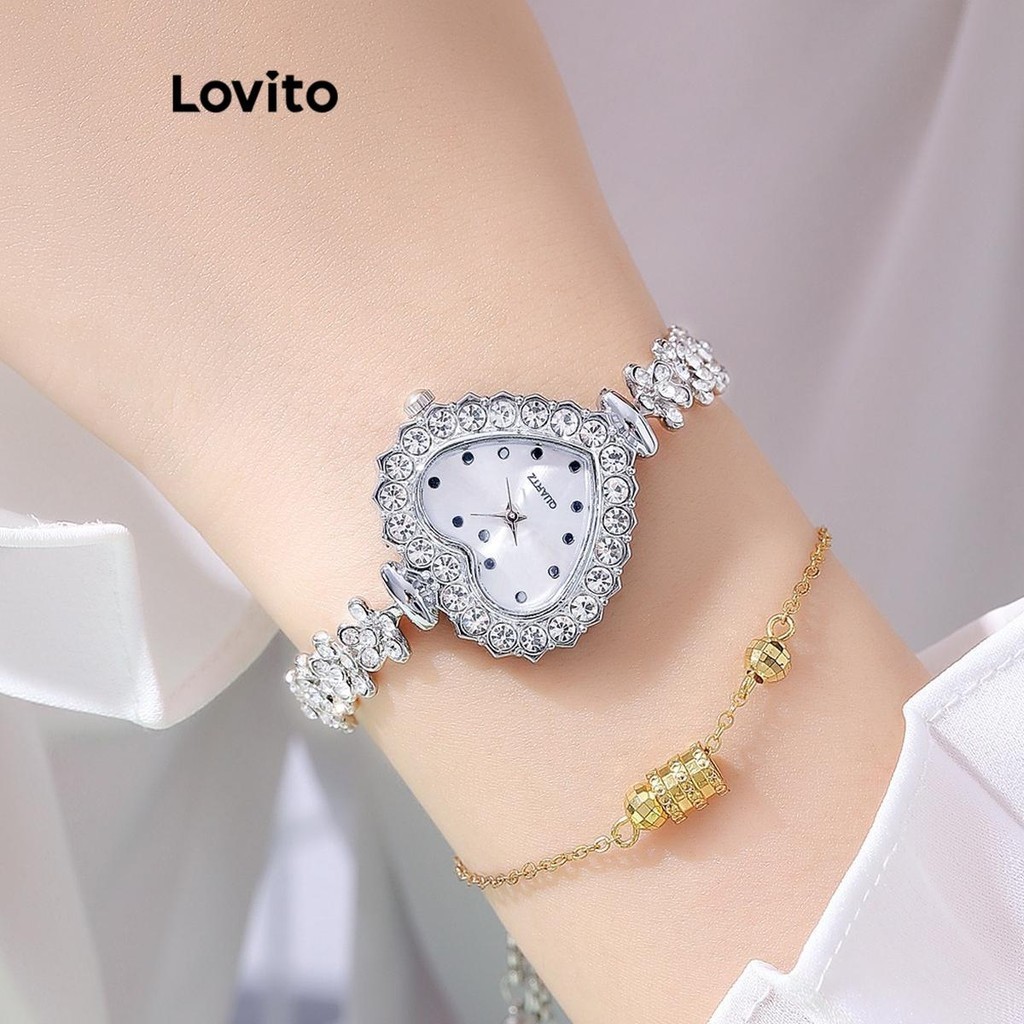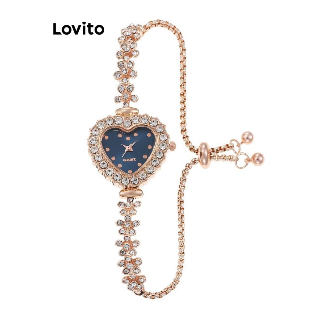 Lovito Đồng hồ đeo tay thạch anh kim cương giả thông thường l004011 (Màu Hồng)