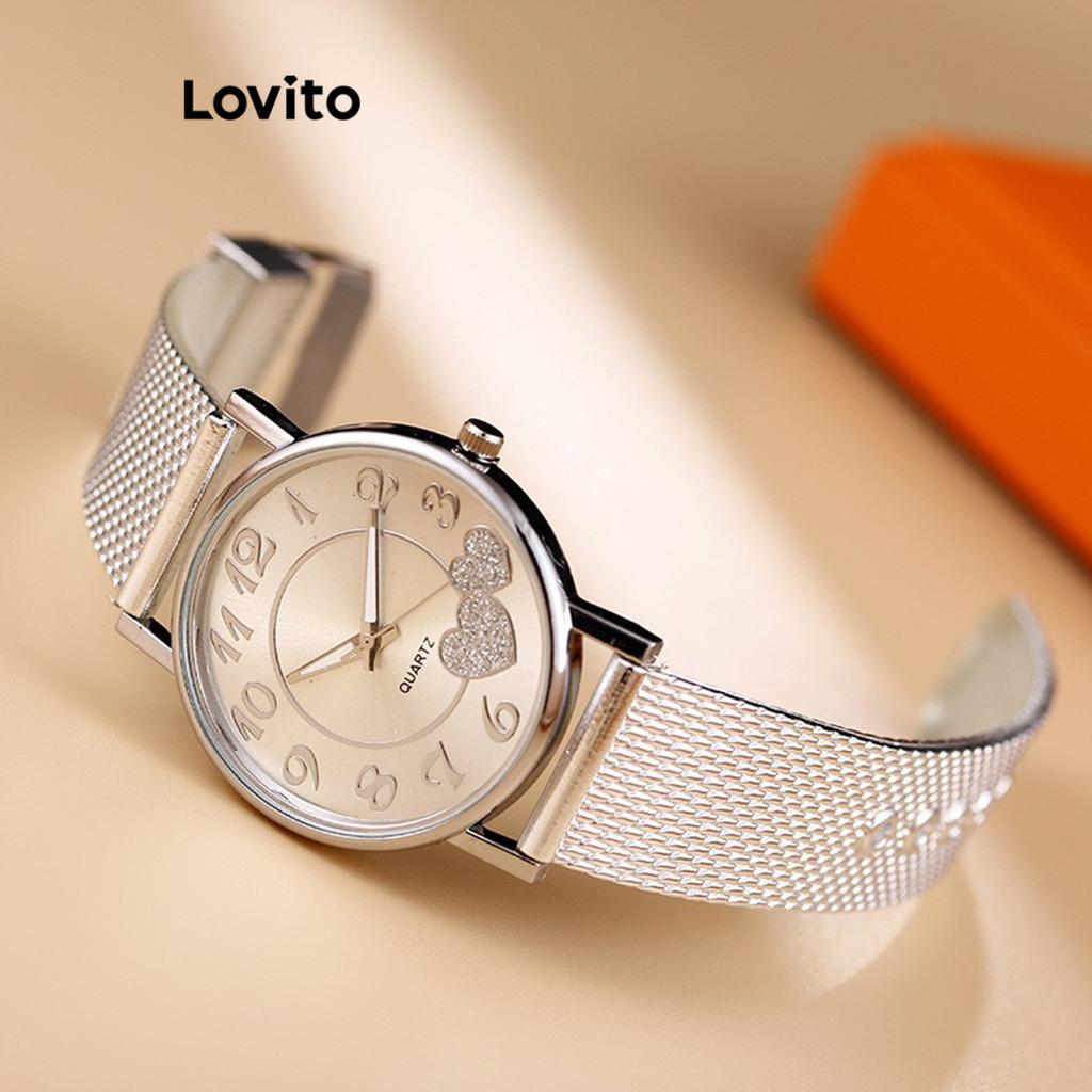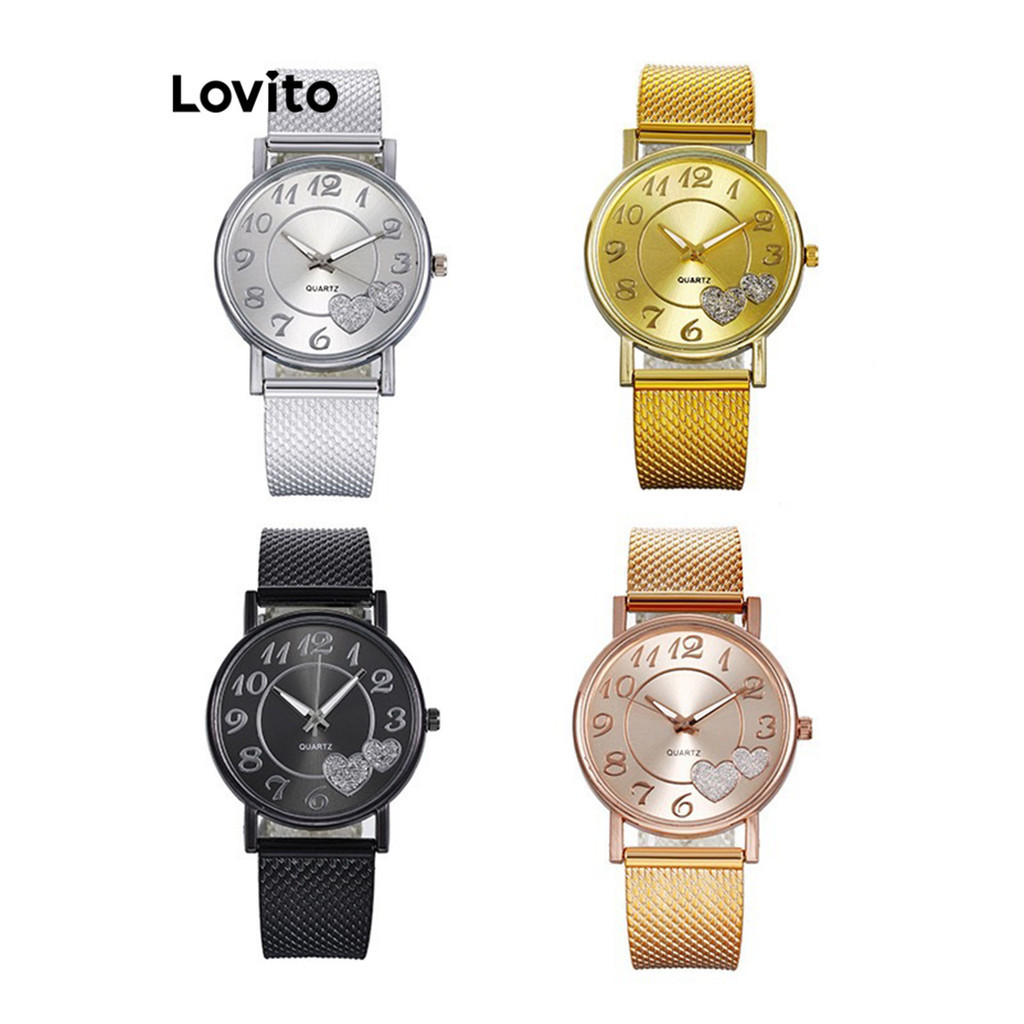 Lovito Đồng hồ đeo tay thạch anh kim loại trơn thường ngày l63ad291 (Nâu/Xám/Hồng/Bạc/Đen)