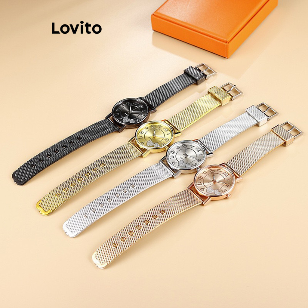 Lovito Đồng hồ đeo tay thạch anh cổ điển thời trang thường ngày l75fd168