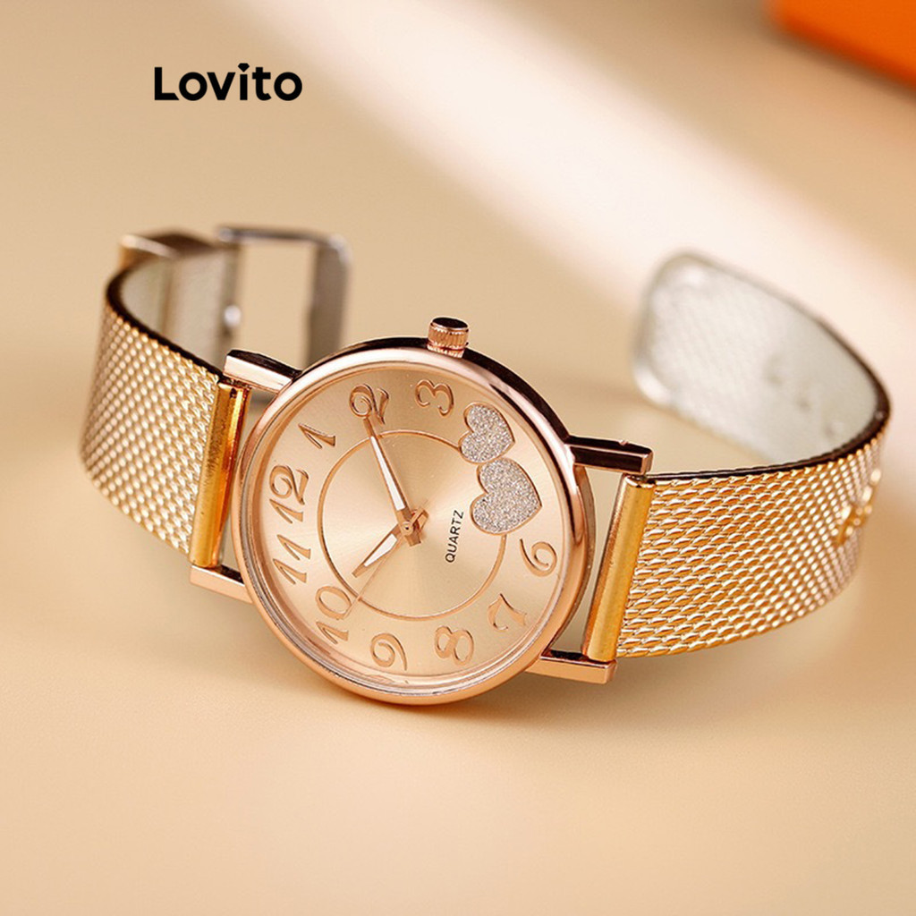 Lovito Đồng hồ nữ thường ngày bằng kim loại trơn l57ad053 (Vàng Hồng/Vàng/Bạc)