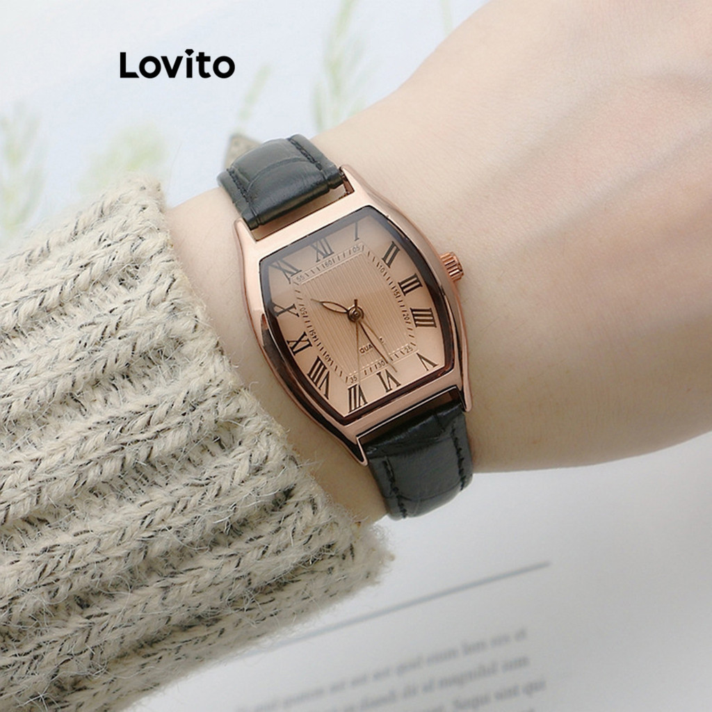 Lovito Đồng hồ đeo tay thạch anh cổ điển thời trang thường ngày l75fd168
