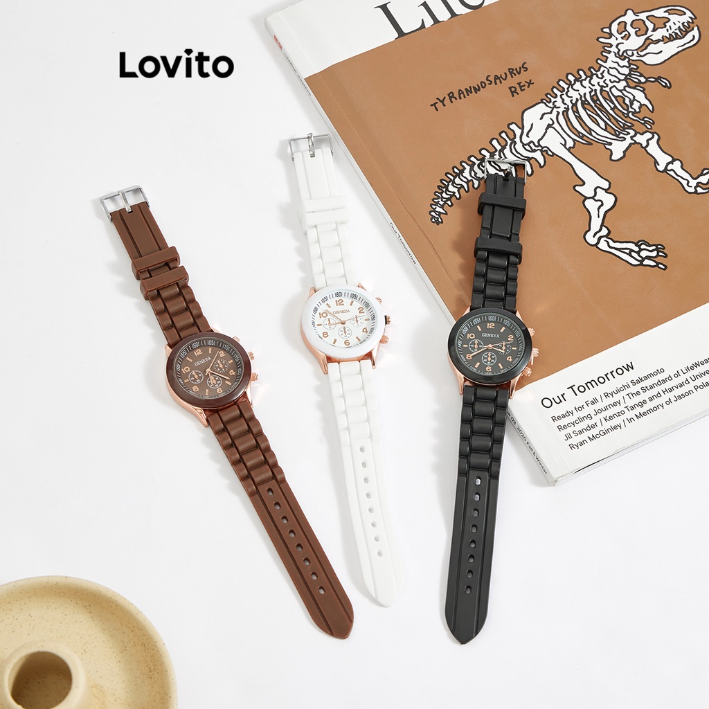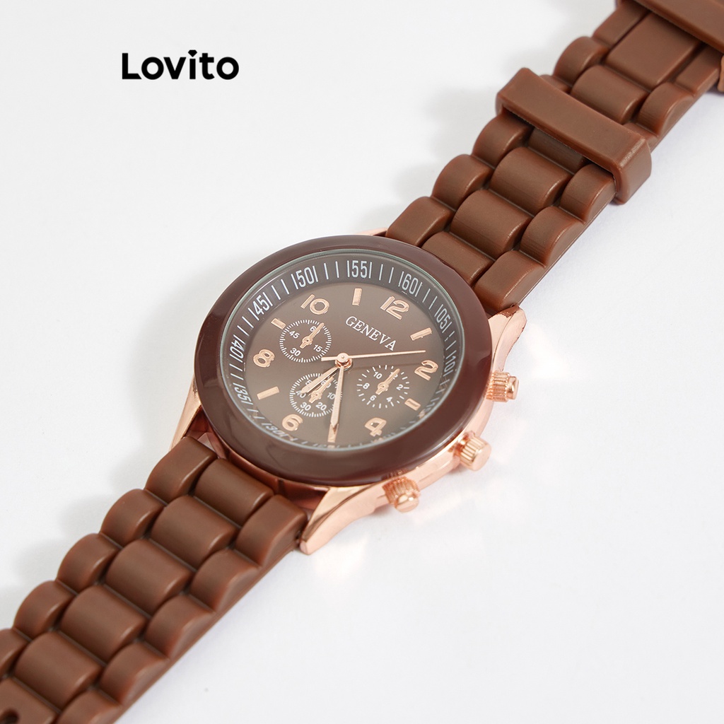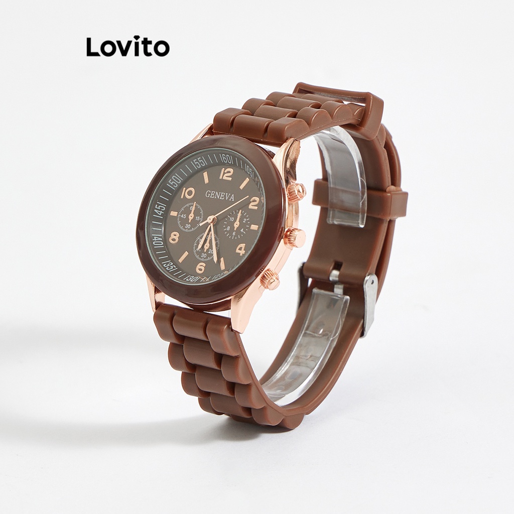Lovito Đồng hồ đeo tay thạch anh cơ bản thường ngày l63ad288 cho nữ (Nâu/Trắng/Xanh lá/Đen)
